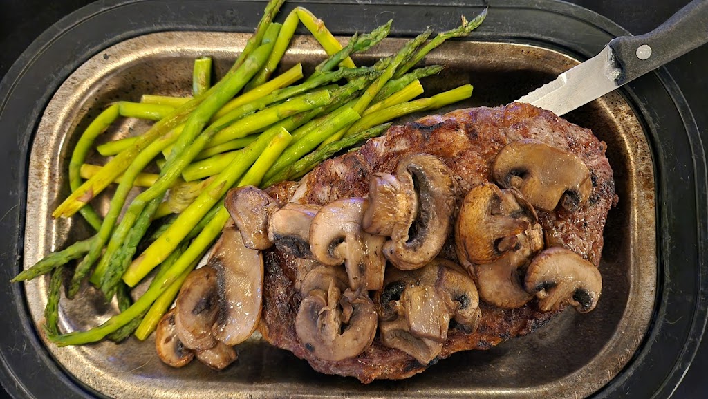 My husband had a steak which he ordered medium received rare and didn't have flavor. He also ordered mushrooms and baked potato, both which were good. He also enjoyed the beef vegetable soup.