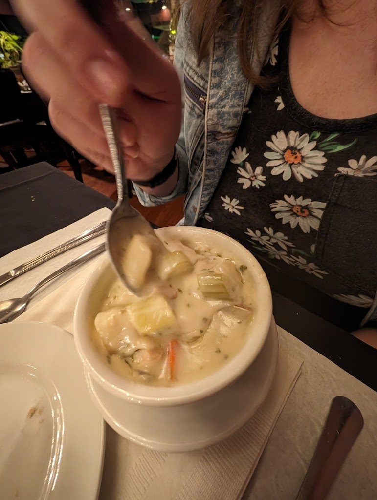 I'm feeling very mixed on my experience here. Let me start with the pro's. Our server was absolutely great and really seemed passionate about his job. He was absolutely hilarious and even gave me free ice cream for my birthday. The food was great overall, my partner didn't particularly drool over her chicken, but me and the rest of my family seemed to enjoy our prime rib.