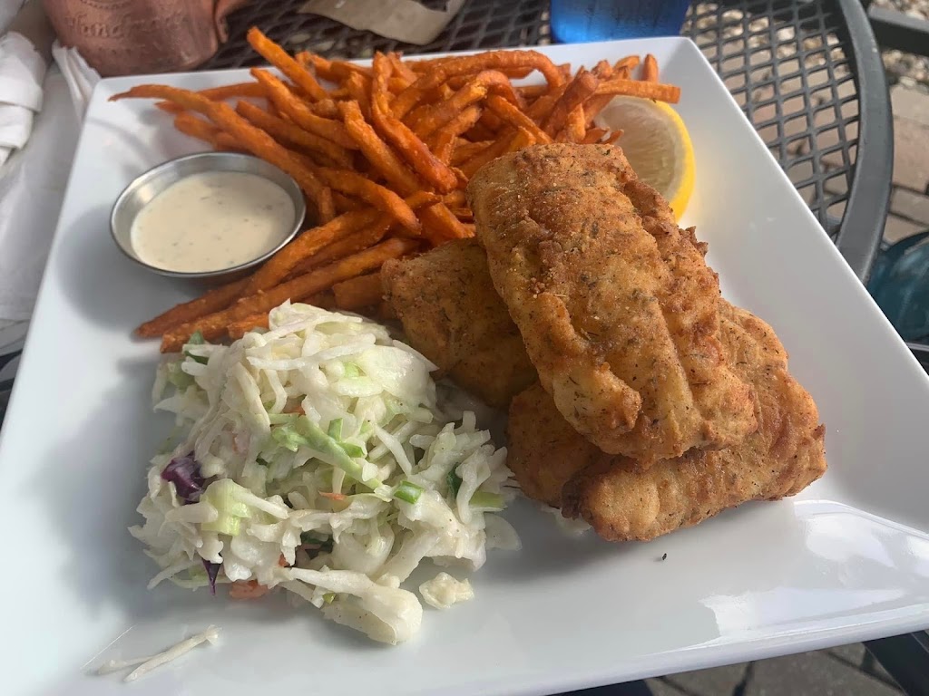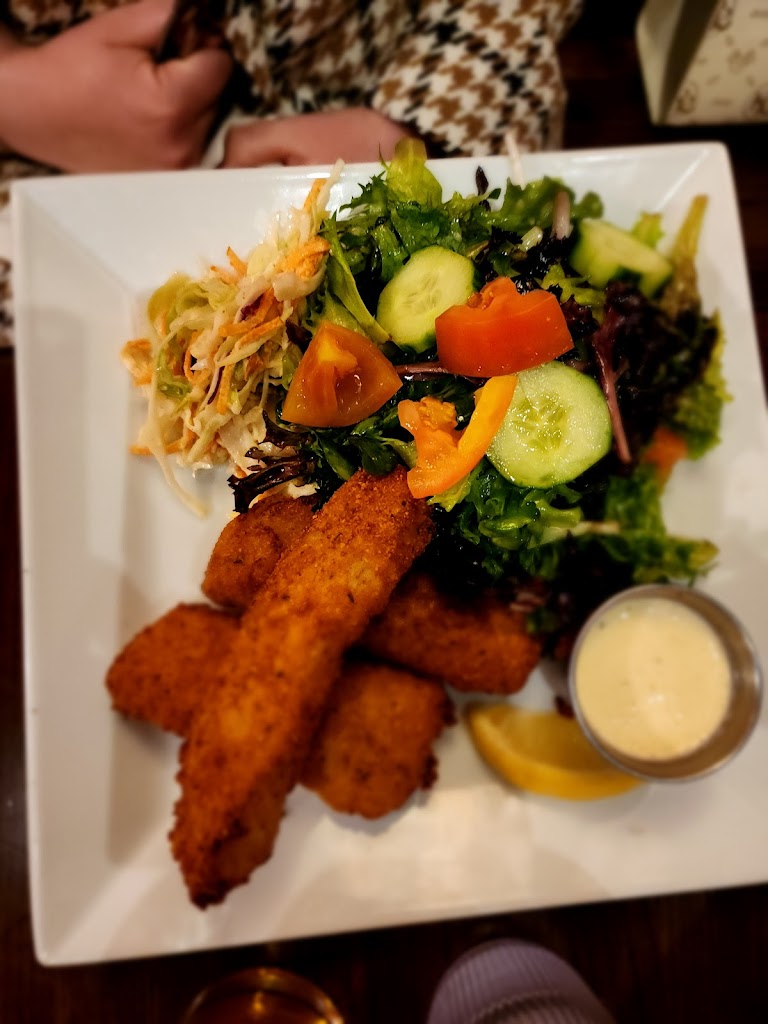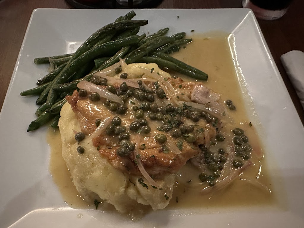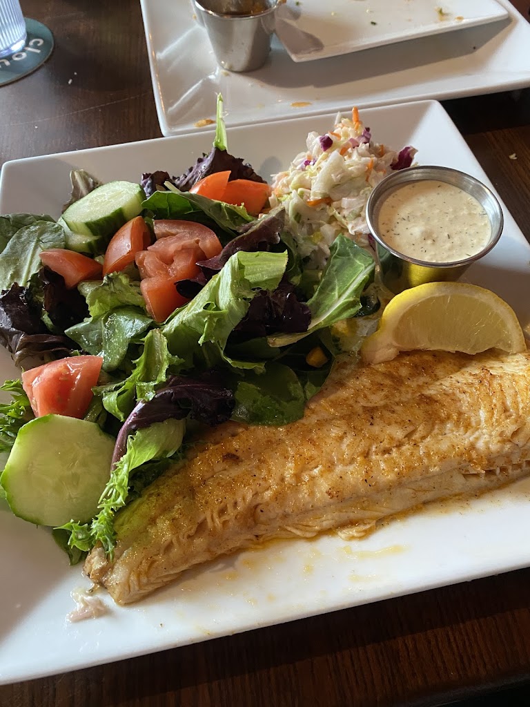 The blackened salmon was very good. The chicken piccatta was also excellent. Pass on the fish and chips, as this was bland.