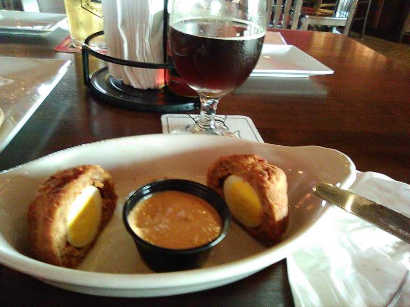 I can always depend on finding a big selection of beers and spirits at this fine pub, with rotating beer and ale and cider selections weekly. And the food is excellent, especially the Friday fish fry options. I hope they NEVER stop offering their Scotch eggs on the appetizer menu! I order one (or more) of these every time I find time for a quick pit stop for a snack and a pint. And they are de rigeur before any larger meal. No one and no place else makes as good a Scotch egg in my experience, which includes Scottish Highland games and time spent in Great Britain. Flying Hound knows how to do the job!