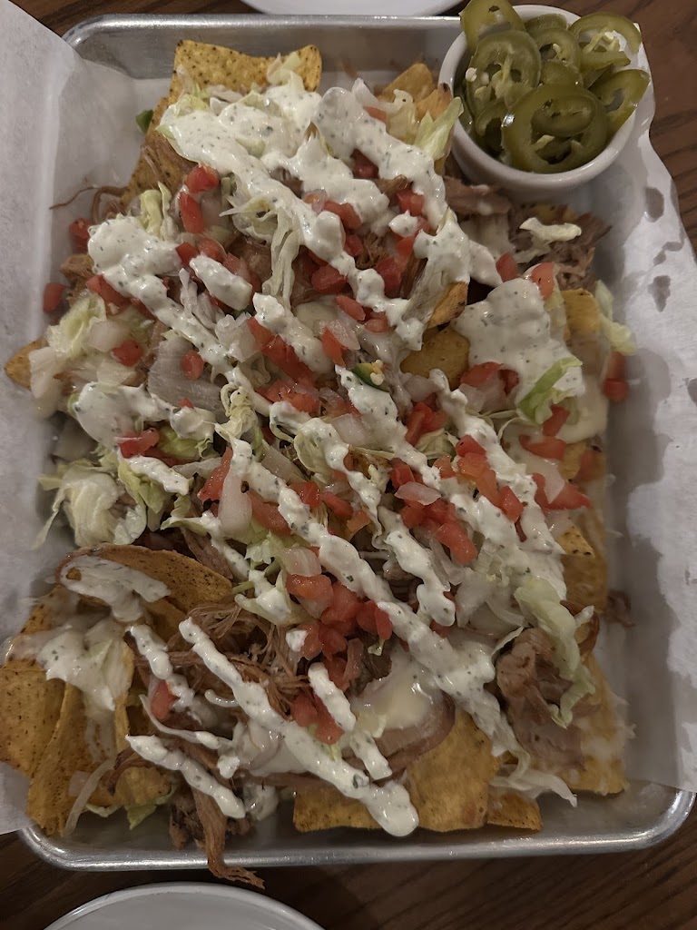 What a great outdoor space to enjoy a summer evening. The patio area is just off the sidewalk in a quiet area. It feels private but still allows for people watching. We joined some friends for a cocktail and some pan nachos. The nachos were loaded with goodness.