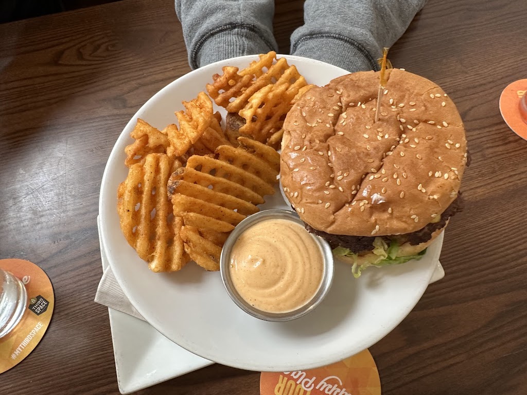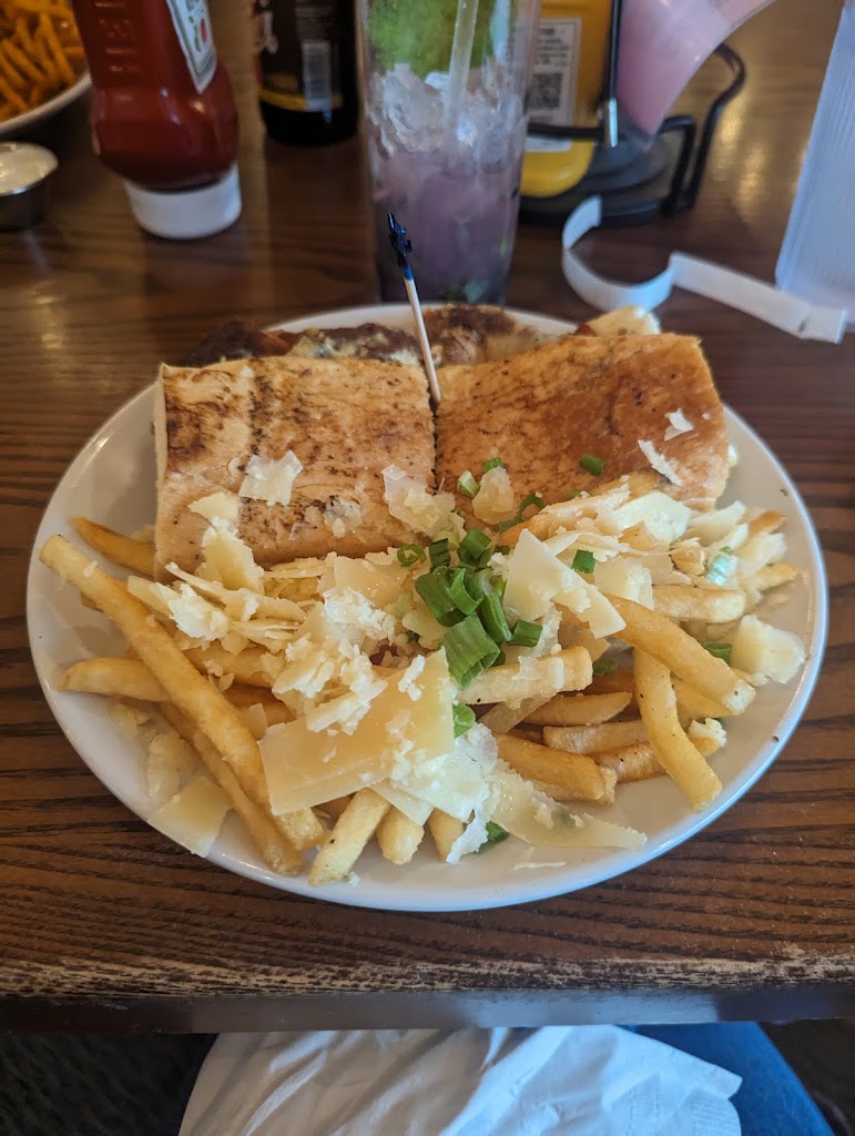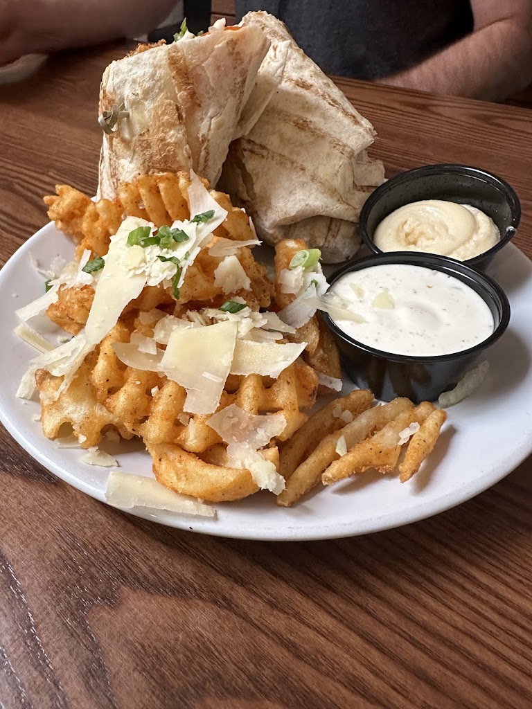 I love the location and there is a lot of indoor and outdoor space! The staff was great and though there was a little tab issue with the table next to us they fixed it right away. The only thing I didn't fully enjoy were the parmesan fries because I thought the parmesan would be melted and it's a little hard to balance whole chunks of parmesan while eating fries.
