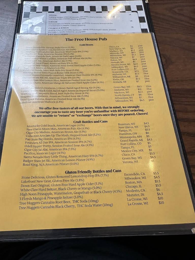 We absolutely love Free House in Middleton. Their friendly staff and creative and delicious menu make it a regular visit for our family. The best part is that they have a dedicated gluten-free fryer for their French fries, which means our daughter with Celiac Disease can enjoy French fries, a rare treat since most restaurants in the Madison area do not offer this perk. I just wish the management would notify the waitstaff about the gluten-free fryer since we’ve had two back to back servers unaware of this offering. Also, the beer list is wonderful but so chaotic - we wish the beers were listed by type to make it easier to read and select a beer. Get the smash burger! It’s perfection. Thank you, Free House, for being such a fantastic restaurant in Middleton. We appreciate you!