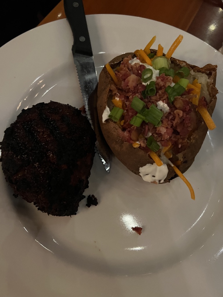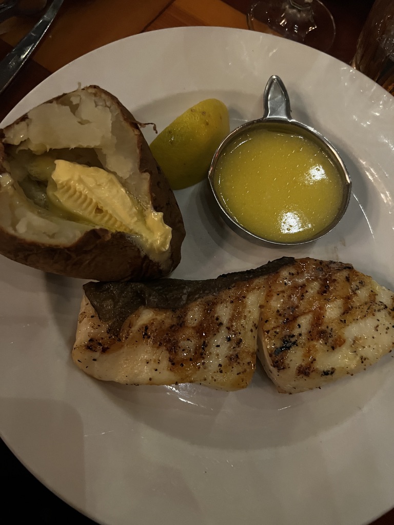Broiled halibet and baked potato were delicious!
