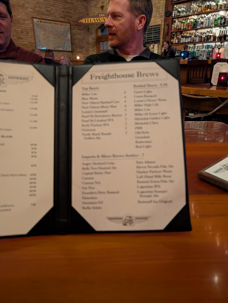 This truly is an old freighthouse that's been remodeled yet retaining the original features of wood and brick. Photos of its past hang on the walls. Excellent food. We try to eat here when we're in the area. Steaks and prime rib are the best. Salads and salad bar are really fresh. Staff are very pleasant and well-trained. Makenzie was our server and very helpful.