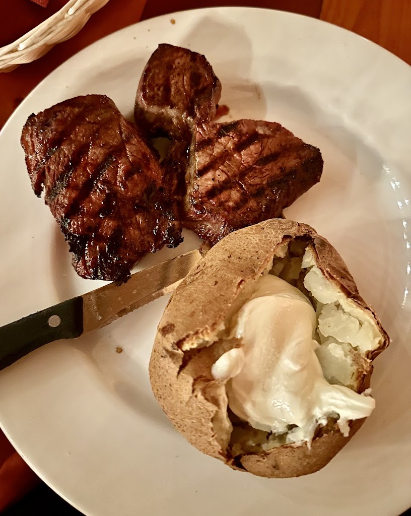 Small sirloin, scallops appetizer and small sirloin with shrimp were had by our group. The steaks were tender and flavorful. The scallops were tantalizing and the shrimp were delicious. The service was top notch. We had steamed vegetables as our side, those could have used some seasoning. The summer salad was refreshing and the salad bar had a lot of topping choices with fresh greens. Will go again if ww are back in the area. They do need to refresh their online menu. The prices are higher than printed online and the menu is smaller than the one posted online. We will go there again if we are in the area.