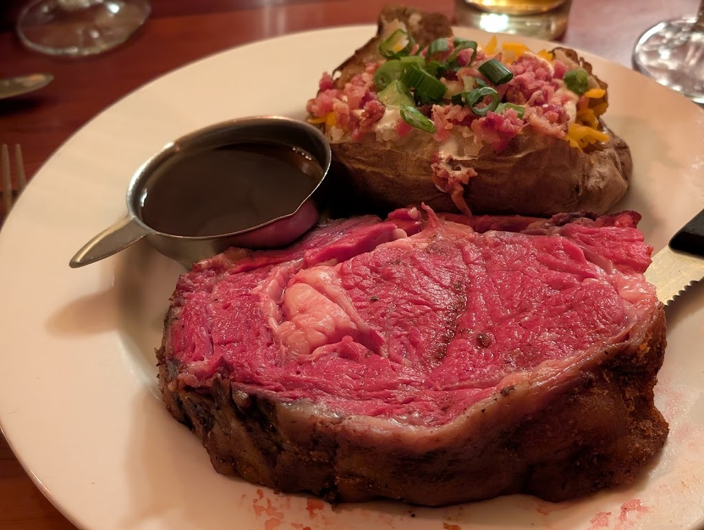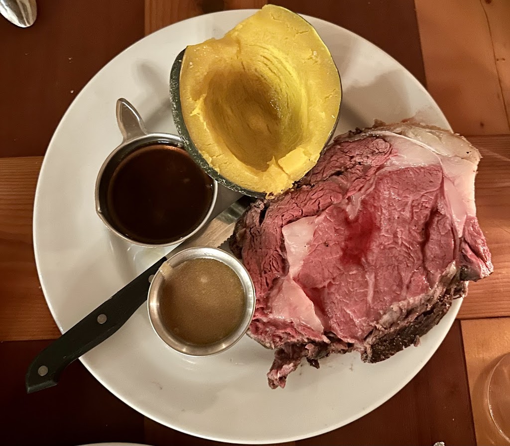 I am a repeat customer. I always thought that the food could not be better. I was wrong the filet was wonderful and the prime rib was beyond perfect and was so big I tried to get a photo but couldn’t get it to fit. Service was super and atmosphere excellent. I was disappointed in the bar a poor selection of martinis and the bartender was apparently new with little help. Not great. But you should note that the restaurant was so good as to overcome that and still rate a five. Best prime rib ever