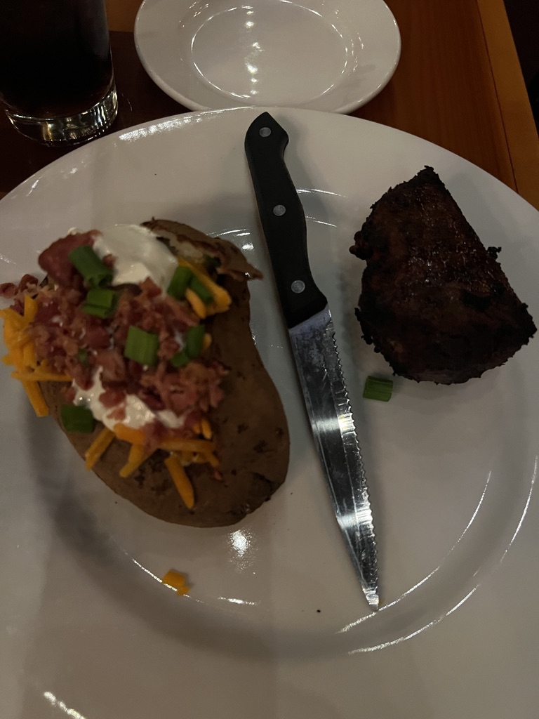 I ordered the 20oz Porterhouse, cooked medium-rare. While it was prepared to the correct temperature, it had absolutely no flavor. For a steakhouse of this caliber, seasoning and flavor should be the highlight, and this was deeply disappointing. I paired it with a baked potato, which honestly ended up being the best part of the meal — simple, but actually enjoyable.