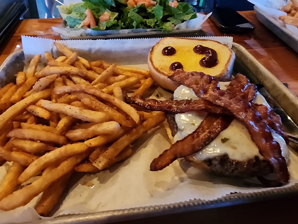 Swinging thru & stopped here for lunch, it’s clean, big, the patio looked nice for the summer, I liked the garage doors, the TVs were ok tho can never have enough. Food came quick and the pork sandwich and fries were good portion and fries tasted good with the spicy seasoning. Multiple taps though twice they were out.