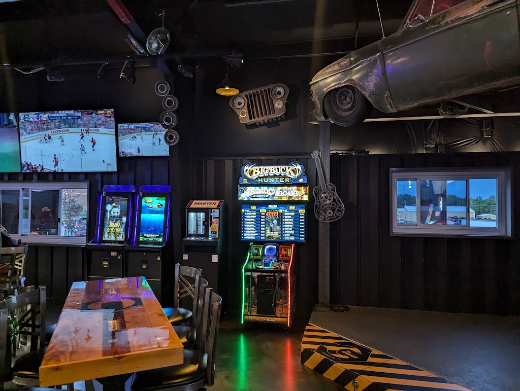 The Garage is a garage themed bar and restaurant in Wausau, WI. Come check out our one of a kind wrench shaped bar! Enjoy your favorite team on our 7 82" TV's or hang out on the almost 2000 sq ft patio!