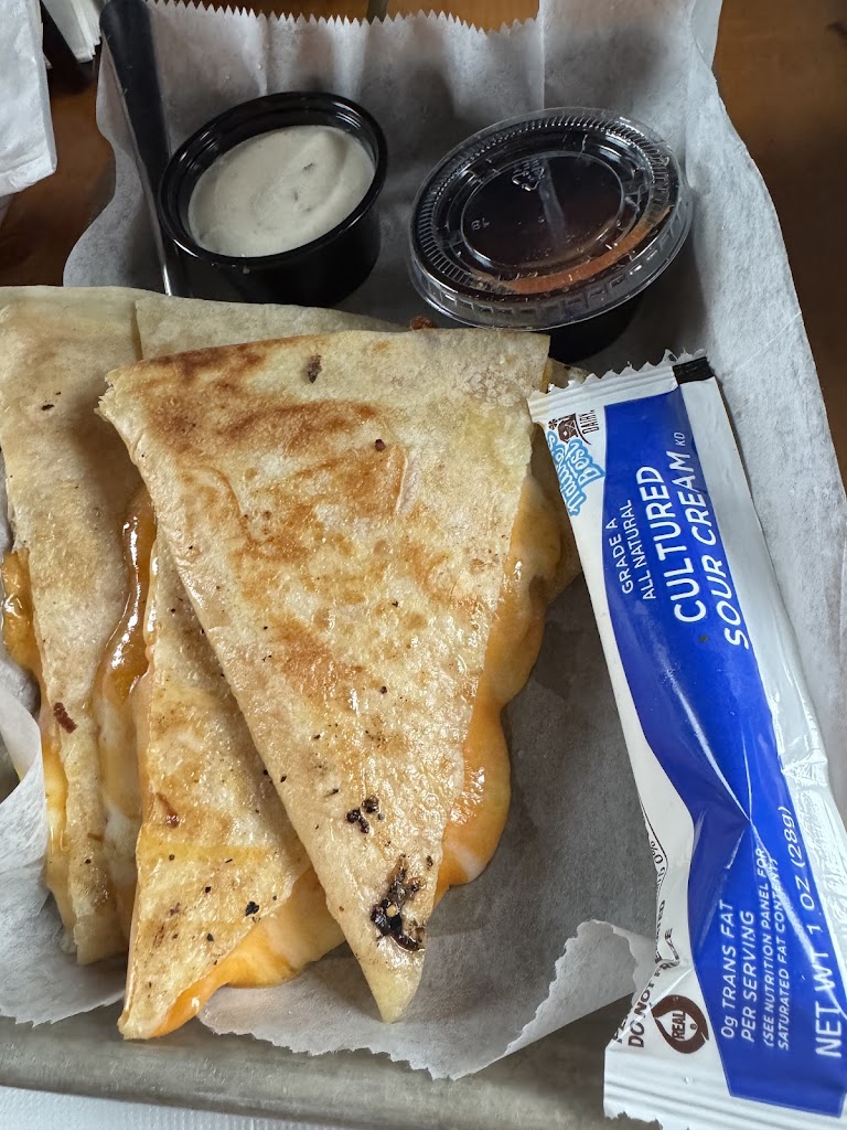 ++ I tried the Chicken quesadilla and it was delicious 😋 along with tater tots. It was grilled nicely, the ingredients were proportioned nicely. I got full after eating only half of it, which caught me by surprise. The chipotle made it hang the flavor it needed. Tater tots were good in texture, not too soft and not too crunchy. I warmed it up later and it was still just as good ! First time eating here and this was not a mistake by any means. Go try out their food here.
