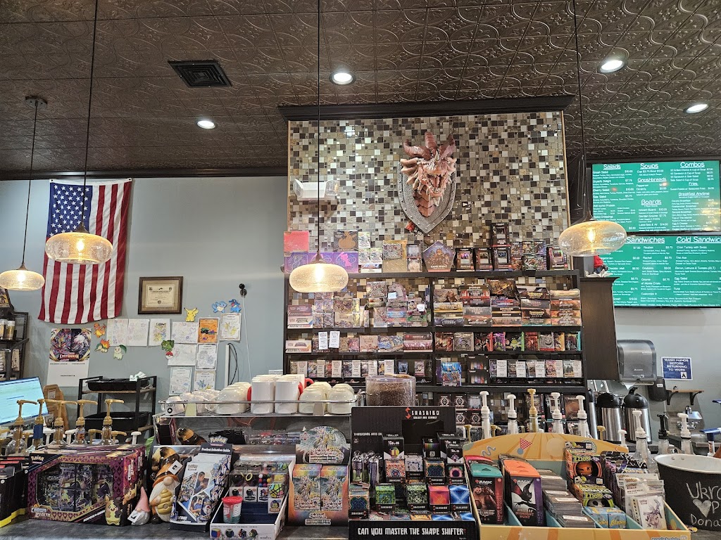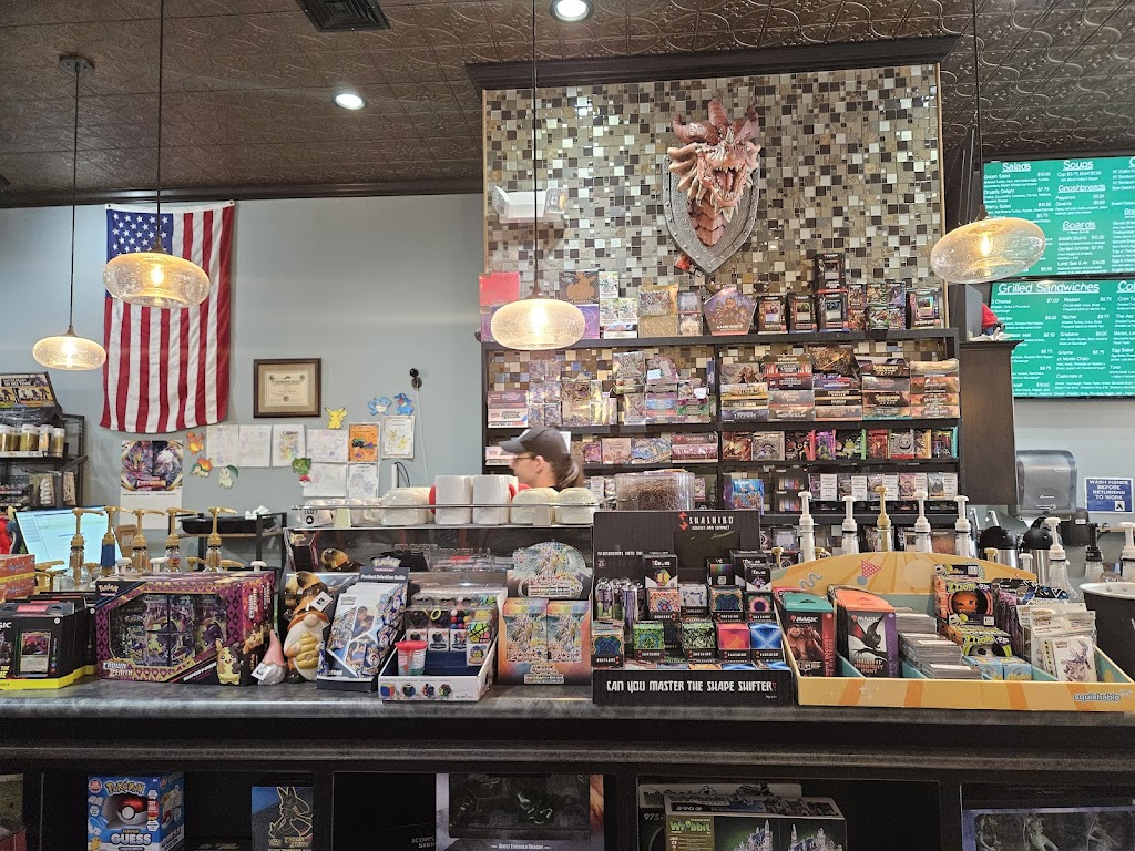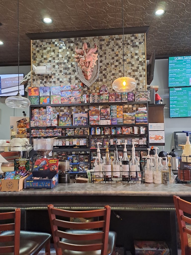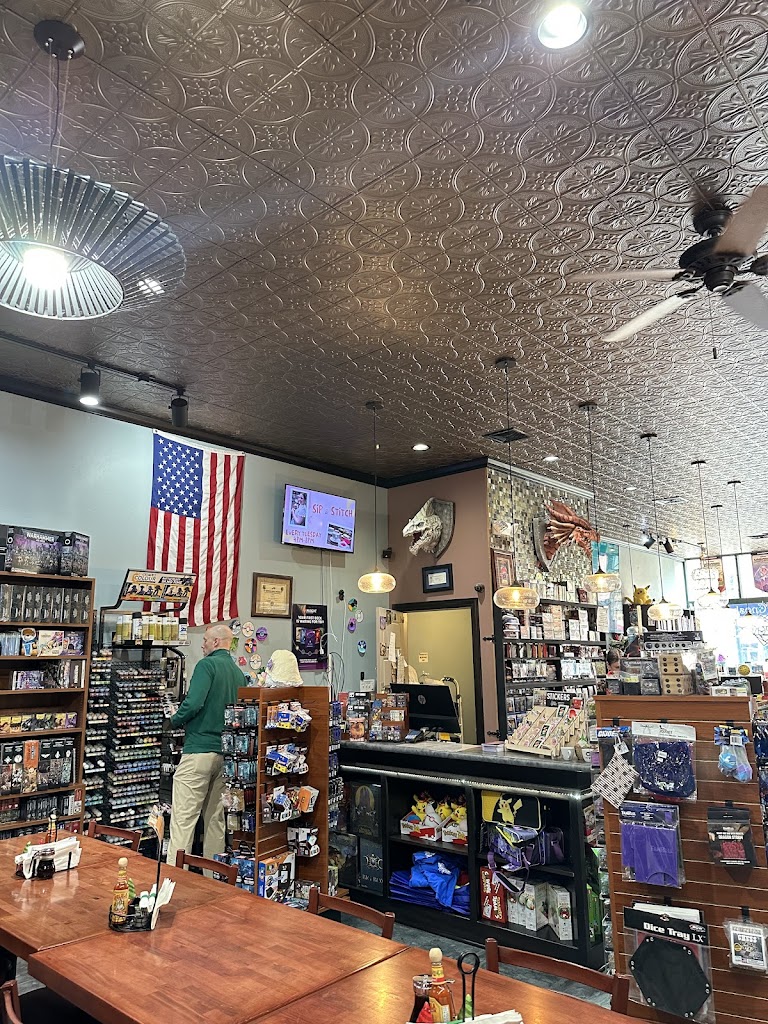 Great place to go and see the newest games, check out Pokemon cards and have delicious food. Their soup is delicious especially with a grilled cheese next to it. Their drinks are amazing too!