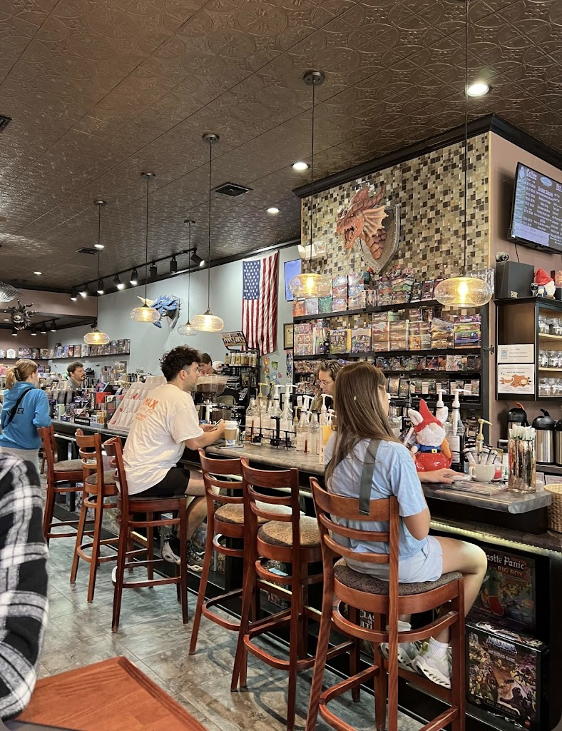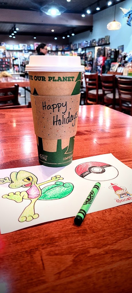 I love this place! I had the Firehammer sandwich and an iced mocha, and both of them were amazing! They're the only place i know around here that uses Ghirardelli chocolate for their mochas, instead of a flavored syrup like Torani or Monin, or even *shudders* Hershey's syrup. You may not think it makes that big a difference, but it's huge. That sandwich was delicious; I got it on the sprouted grain bread, and it was perfect. A little crispy and spicy and delicious. I also picked up a game while I was there(Here to Slay) which looks really fun and was recommended by the staff. I'll be back for sure!