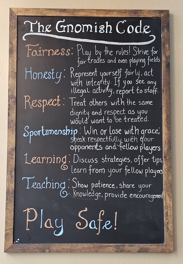 HUGE selection of games. Lots of open games to stay & play in the store. Could spend hours here. Really cool local establishment that builds community! 👍👍 For The Gnoshery!!