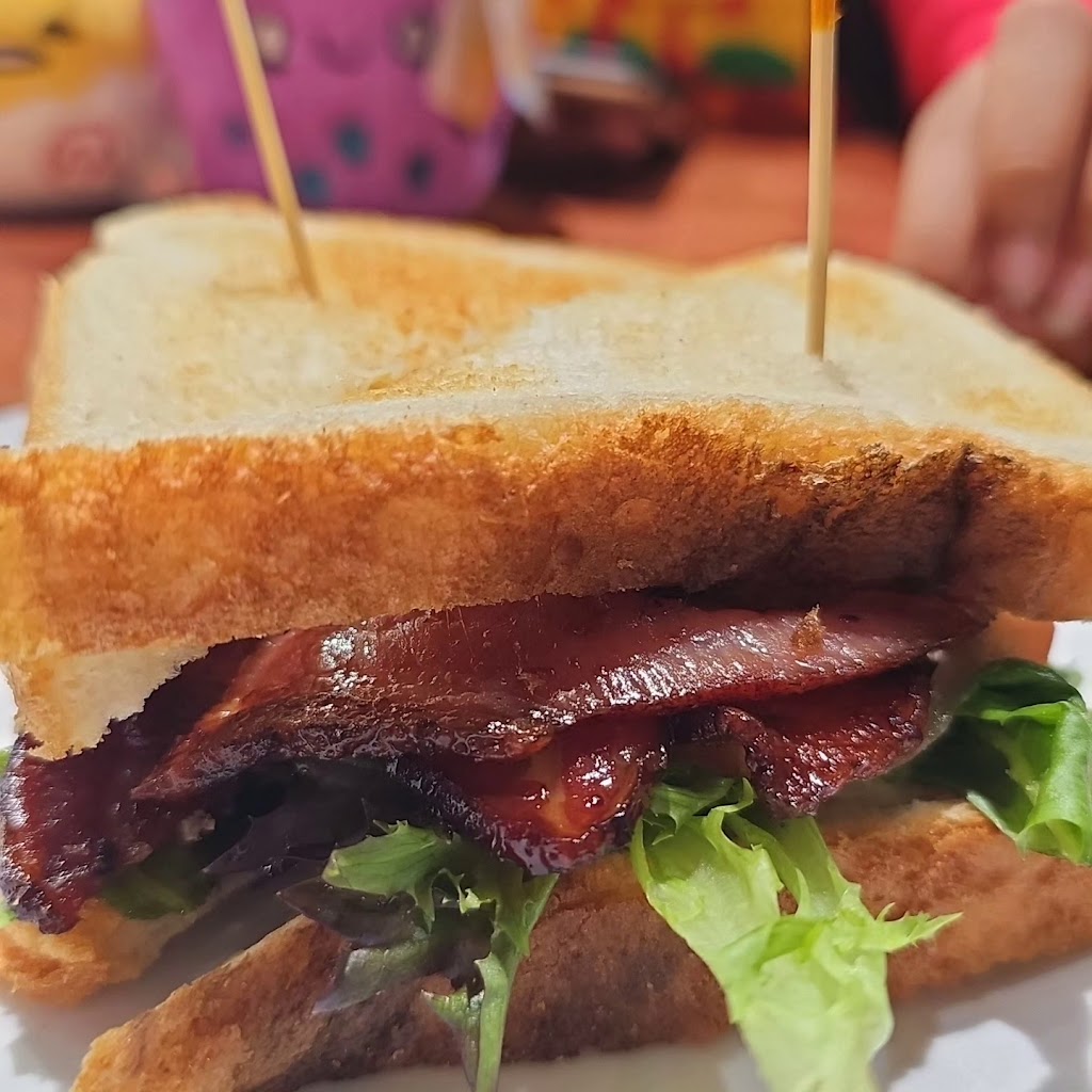 Had a BLT on wild rice bread it was very good. Interesting concept of game store and food. Nice atmosphere, staff friendly food great!