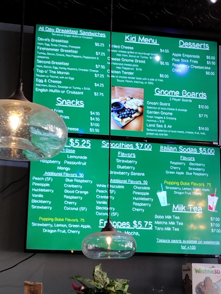 I just LOVE this place. We stopped today for our first time. The food was amazing, the drinks are delicious (especially the slushies with boba added), the game selection is ginormous, and the merchandise is unique must haves for any gnome/game/squishamellow lover. We will definitely be back.