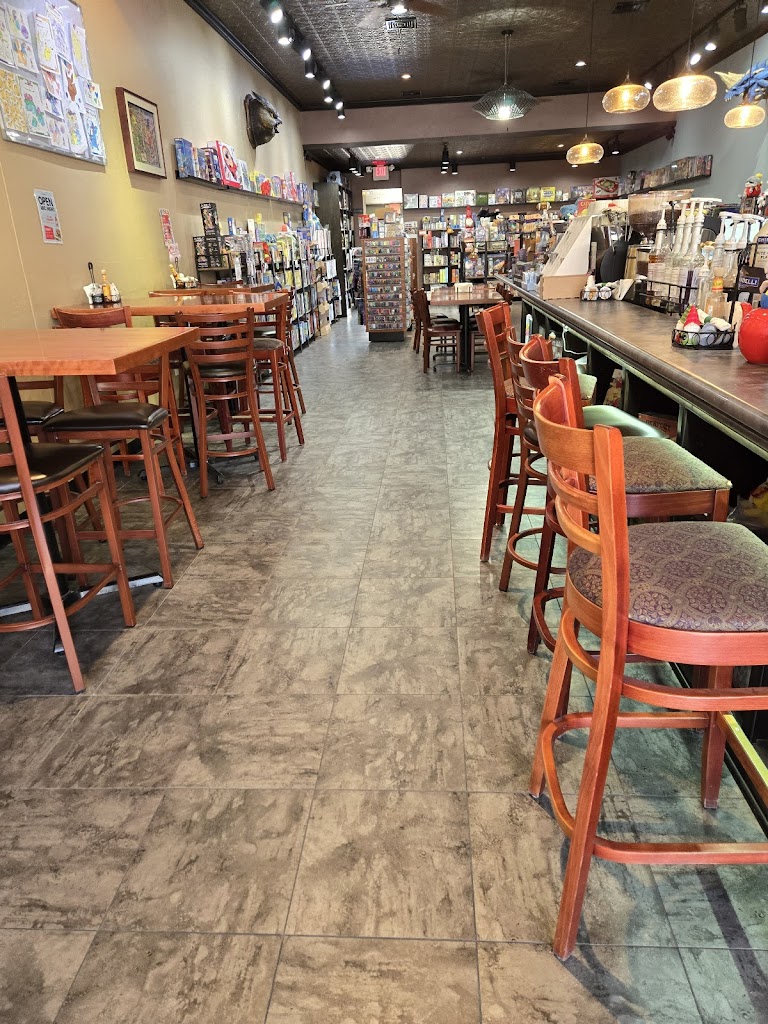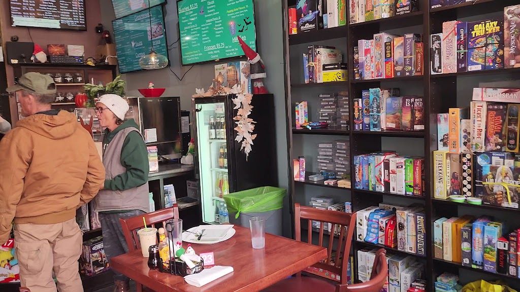 Stop and enjoy Breakfast, lunch, snacks, treats and early dinners while you play board and card games, sip delicious coffee, tea, and cold beverages.