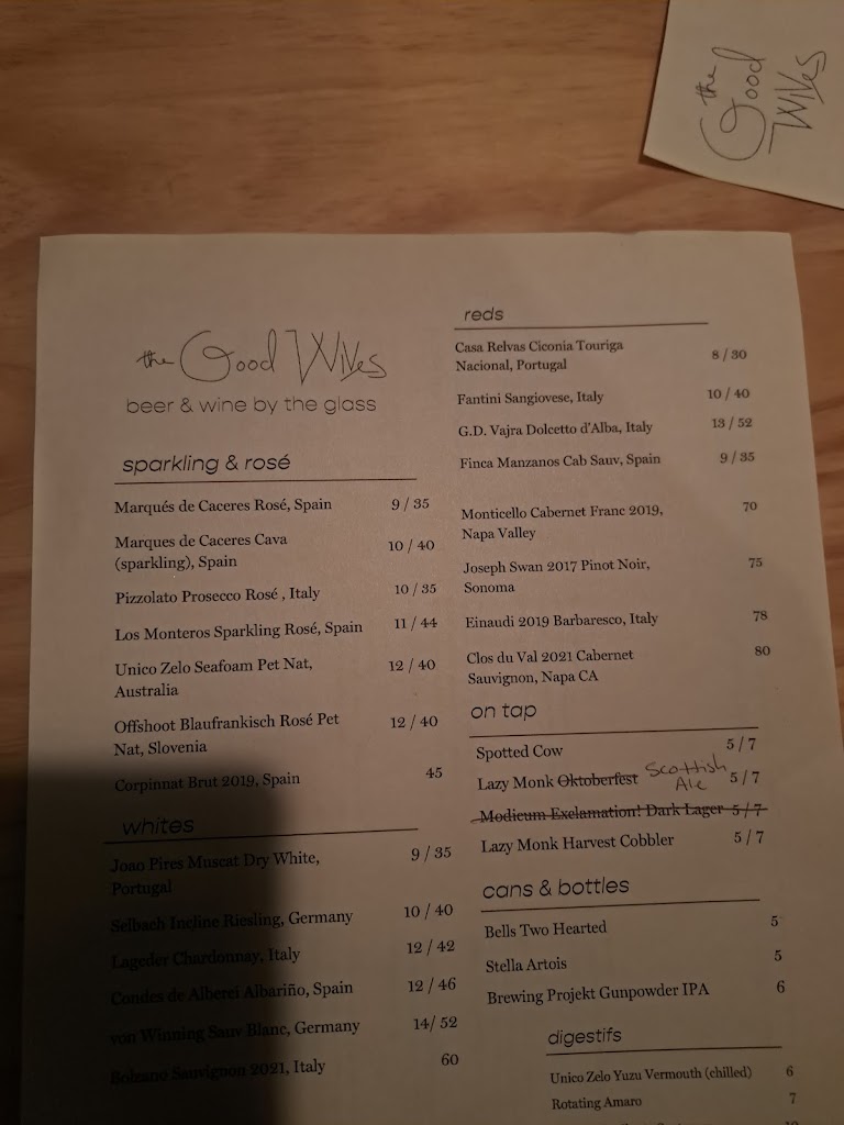 Truly enjoyed dining at the Good Wives. Every dish was inspired, full of flavor and balanced. Highly recommend.