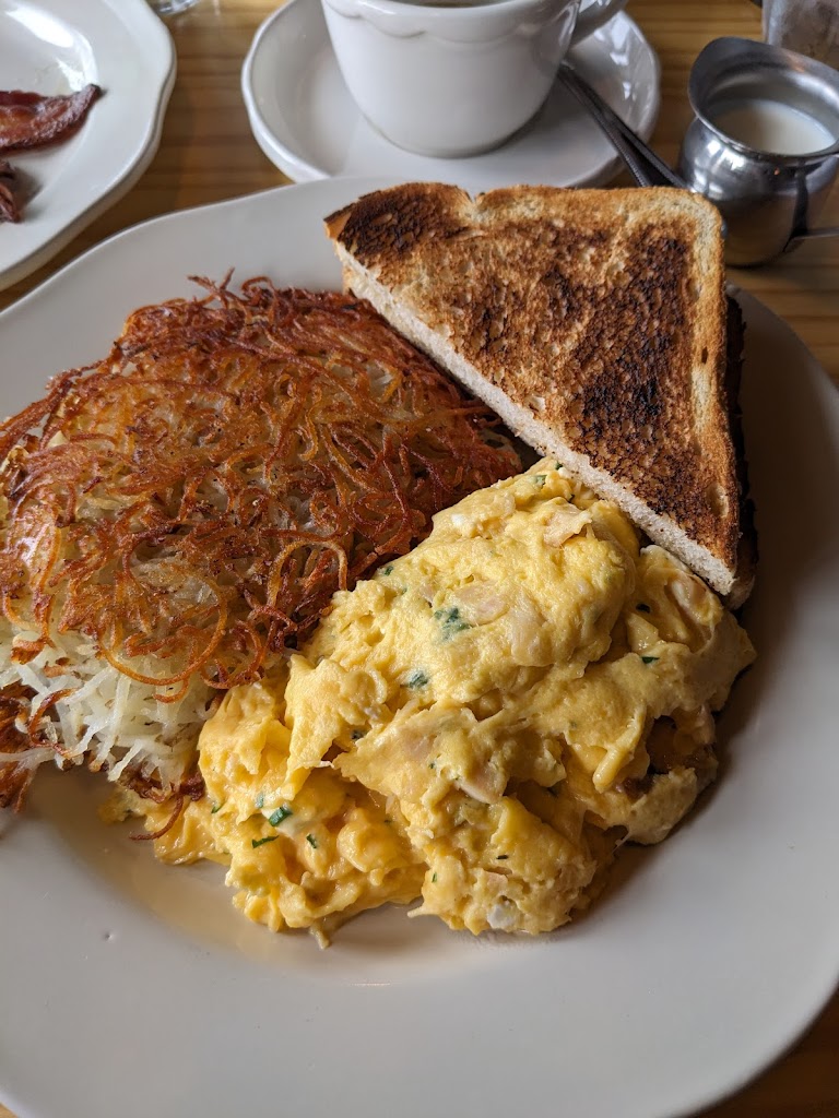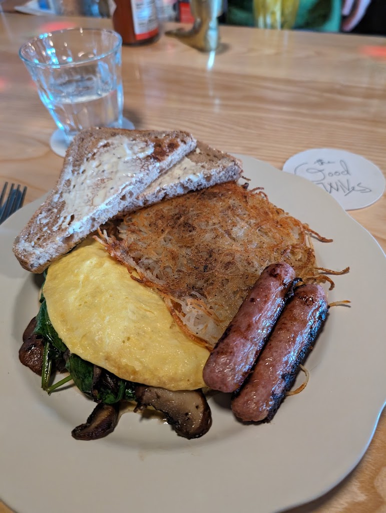 The vegan sausage was delicious, the coffee amazing, and the hash browns - mind blowing! The portions were perfect. Even with a larger group all of our food came out at once and was so fresh and tasty. Everyone in our group was beyond satisfied with their orders.