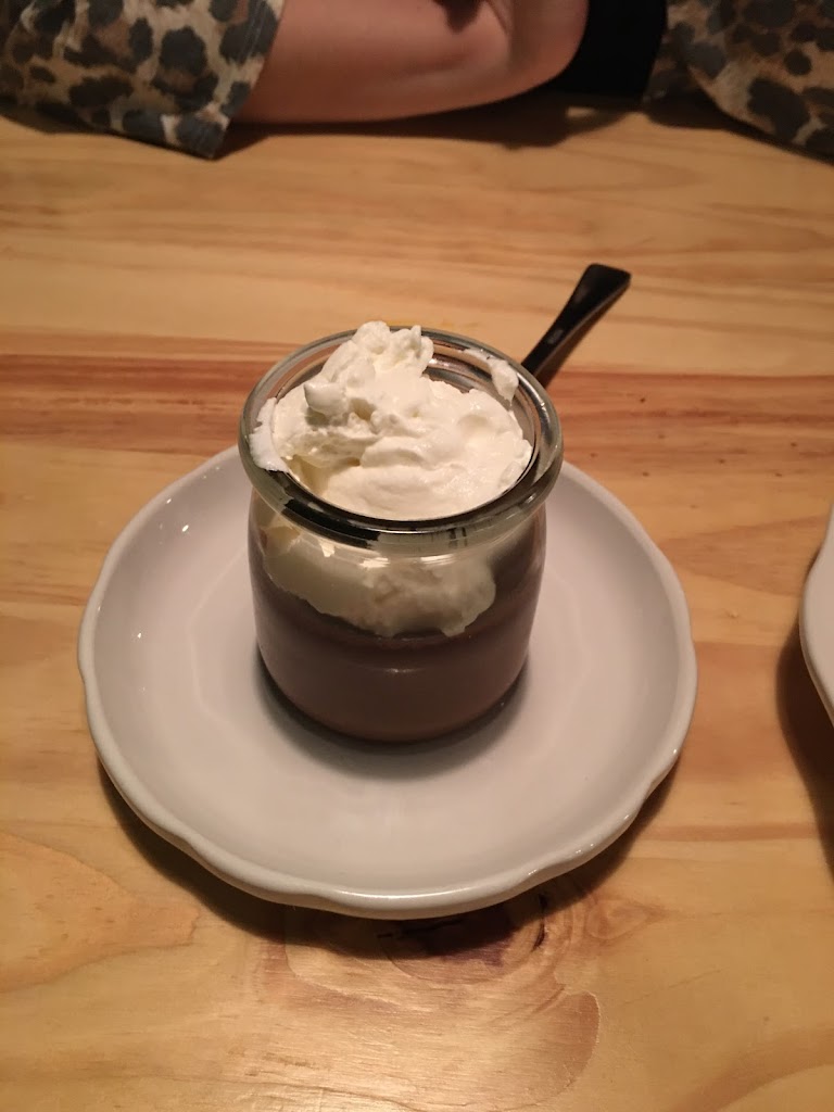 For dessert, we indulged in both choices - chocolate pot de créme and a mocha walnut torte. The pot de créme was outstanding. The torte had great flavor but I wish there had been more textural contrast.