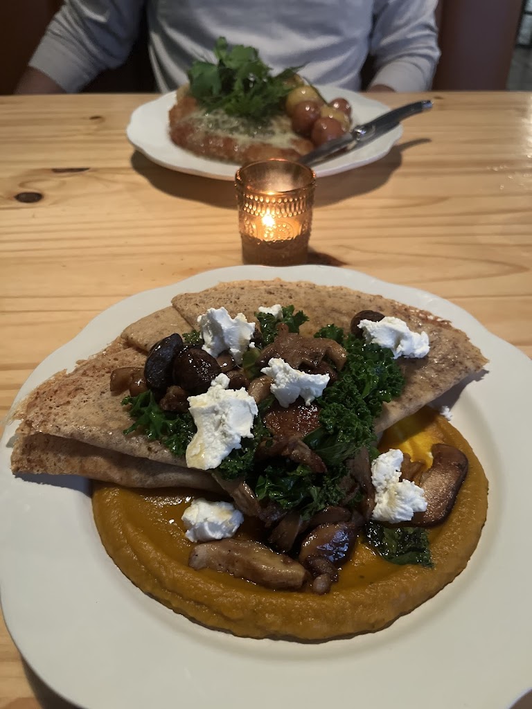 Comfortable atmosphere, sweet artwork & plants, very personable server and even better food! I got the ‘forests floor’, love the name, mushrooms were deliciously cooked and that carrot sauce—SHEEEESH, to die for. I need to eat this again. I will definitely be coming back here! Thanks for the wonderful service folks.