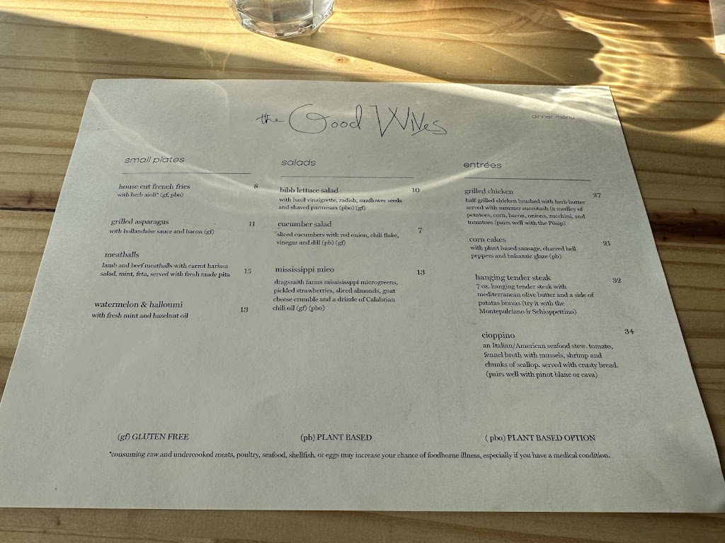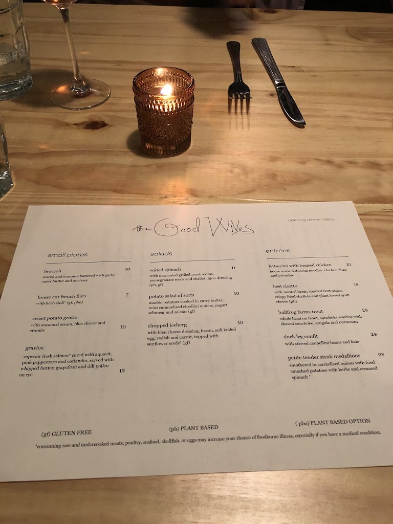 The Good Wives is a small, family owned restaurant specializing in hyper-seasonal small plates, house made pastas, and entrees.