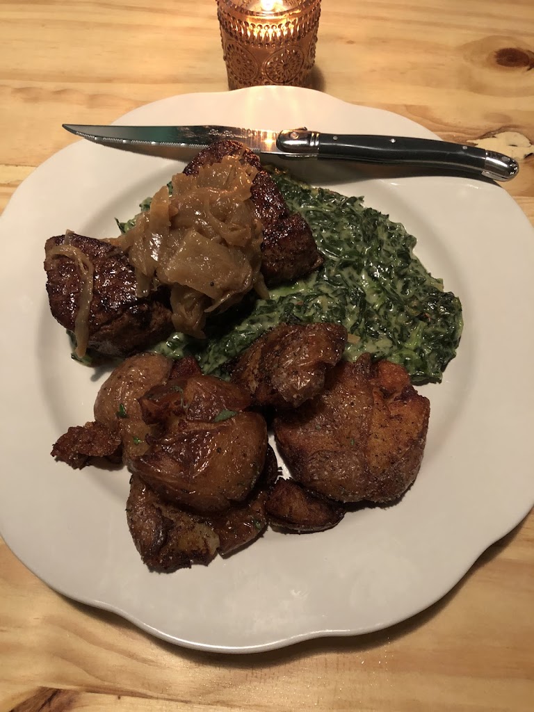 Great food with a seasonal rotating menu. We had the lox appetizer, tenderloin medallions and duck confit and a bottle of wine. Since we’ve visited, they got a full liquor license and will not serve cocktails. Dinner is Wednesday through Saturday. They have a weekend brunch on Saturday and Sunday which I have not had but I heard it’s delicious. Friendly service.