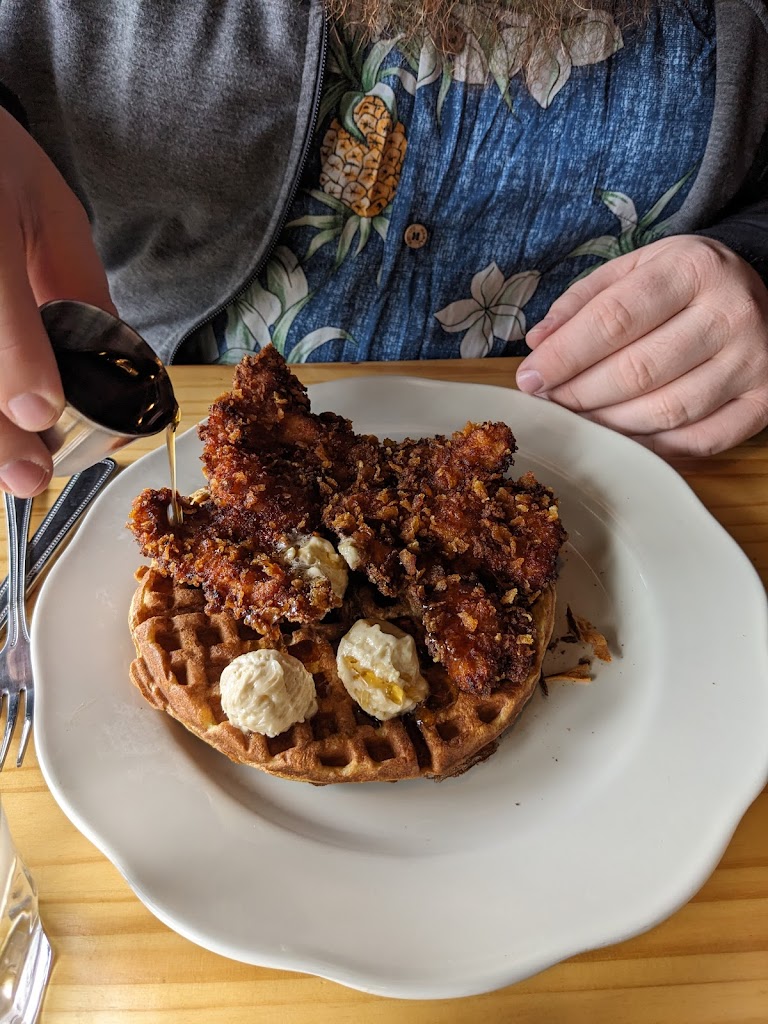 Our favorite brunch choices are the incredible Chicken and Waffles (perrrrfect blend of sweet and salty), Good Wives hash, Biscuits and Gravy, and Eggs Benedict (Finally! A good sauce!). Mouth. Drooling. And this is coming from someone who has eaten foods around the world and not just bland and basic Midwest food. The service is so friendly and on top things. The food will make you want to come back every week. And you also can't go wrong with their desserts and drinks. We love this place and come here at least every other weekend for brunch. HIGHLY recommend!
