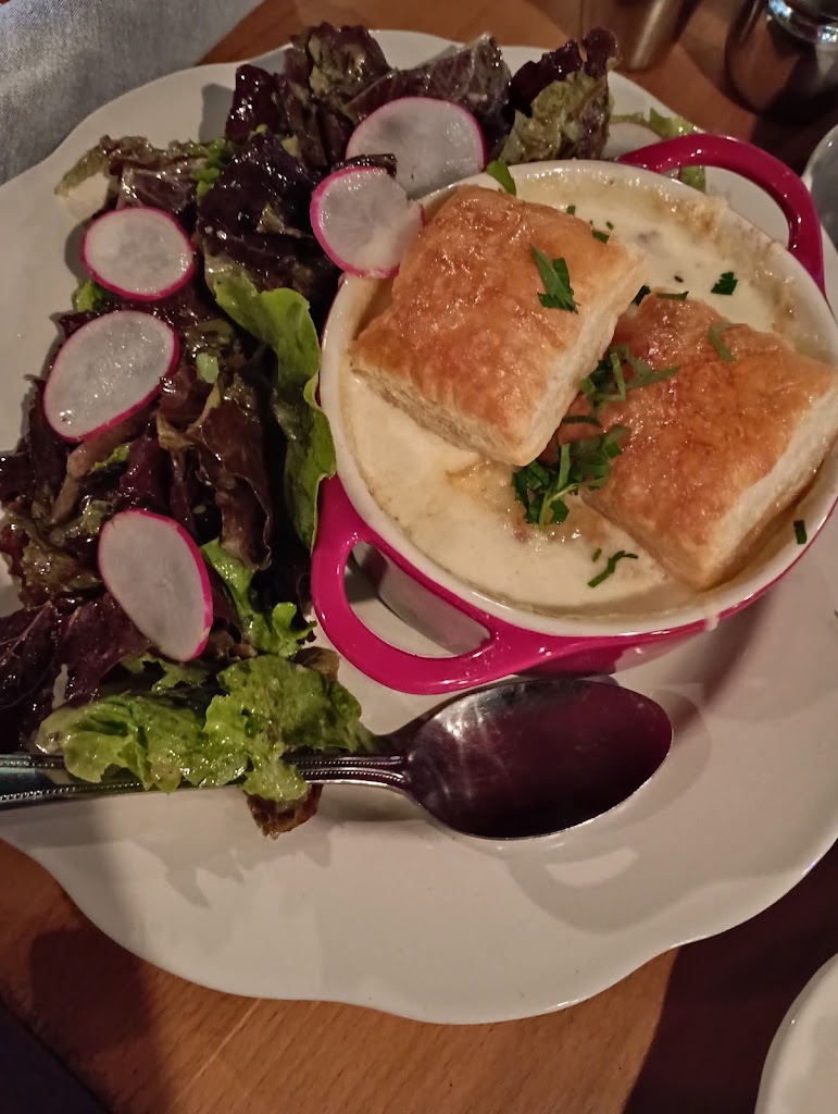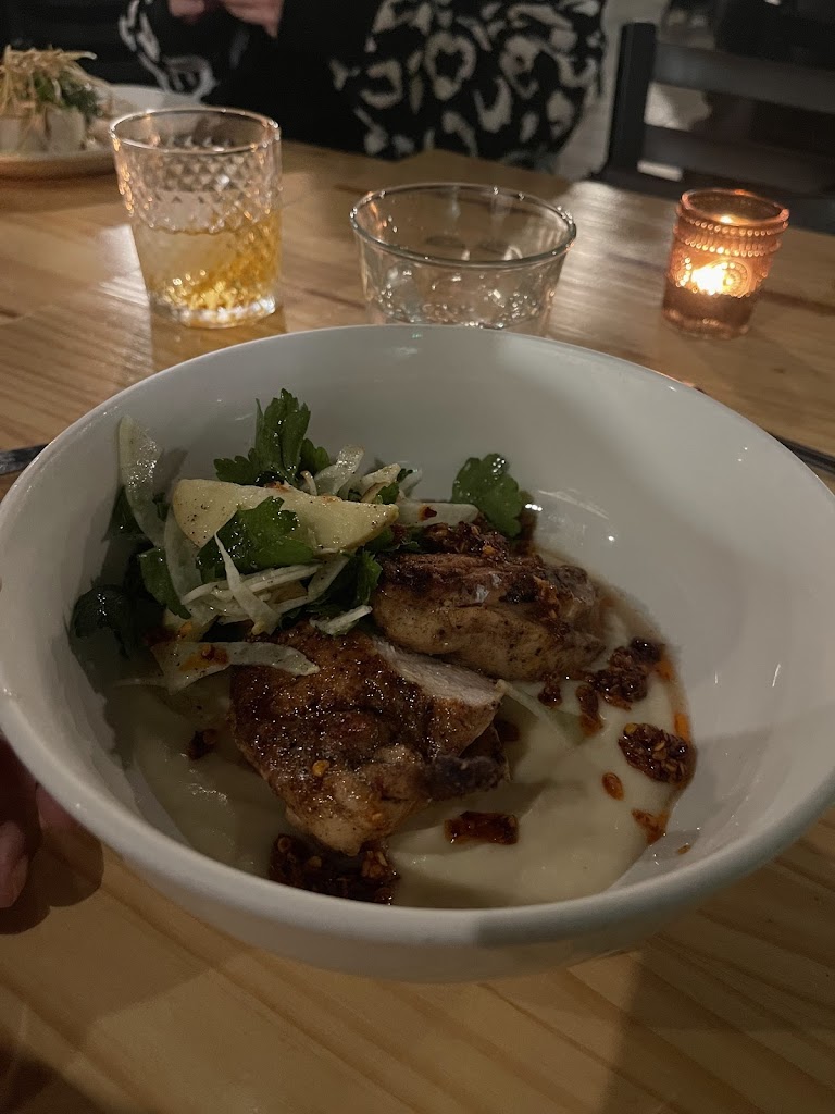 Food was good quality. I would love to know where it is sourced. (I am assuming its all local) I am all for a changing menu, but it would be nice to know before you sit down what menu items they are going to have. Especially in 2023, eveything is so easy to upload, or even just a menu in the window. I am so excited to try a steak or beef option. I am not a fan of most chicken dishes if I am going out to eat, that's what we had tonight. It was decent and I would recommend it to others. But was all hyped up for (hoping for) the beefstew that was on their sample menu.
