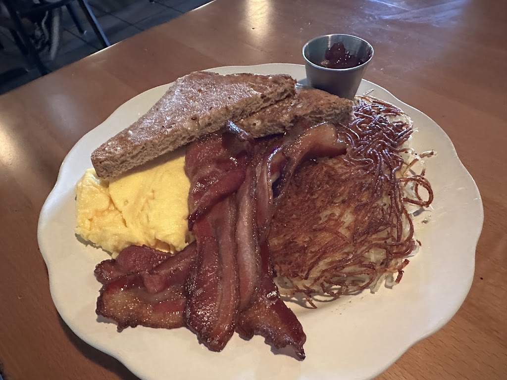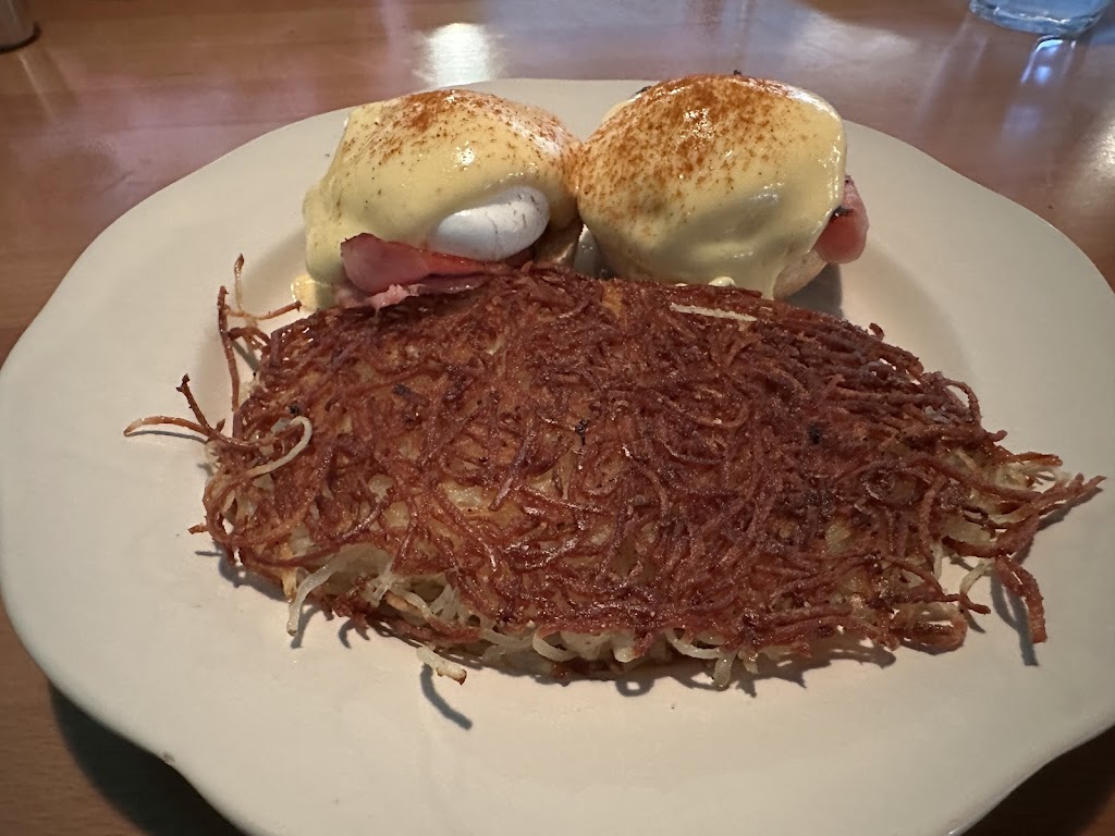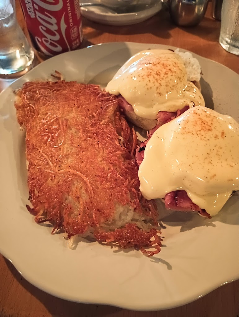 The brunch is delicious and the hash browns are super crispy and perfect.