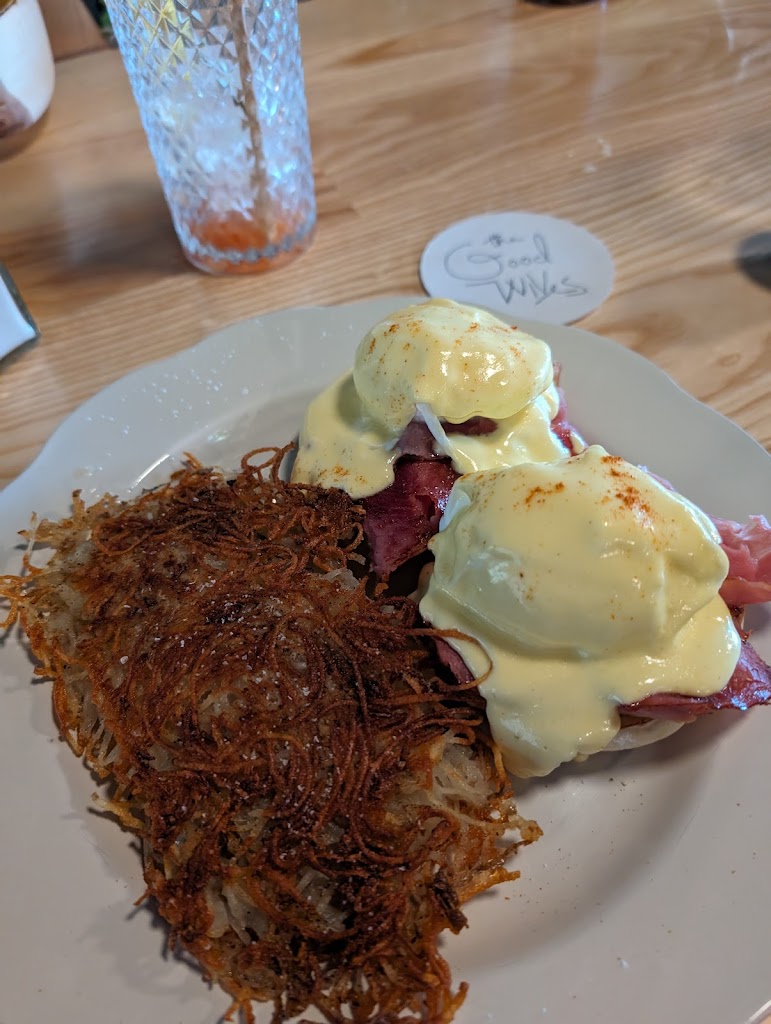 Looking for Sunday Brunch options. One person does not eat red meat and prefers vegetarian or vegan fair, and the other goes along with these tastes at home, but when out socially is a happy carnivore! The Good Wives to the rescue! The atmosphere, vibe, and wait staff immediately shifted us into a relaxed, comfortable, and slower paced experience. The food did not disappoint, one had the vegan omelete and the other the braised beef hash. We are already planning a return to sample more menu options. HIGHLY recommended.