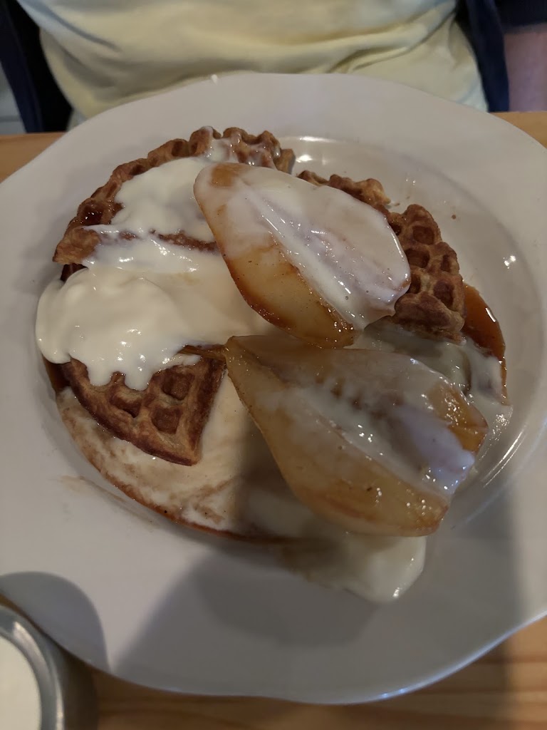 The food was amazing! I recommend anything! The eggs en crocotte was delicious. Chicken and waffles, blintzes and the hash were also amazing!!! Highly recommend