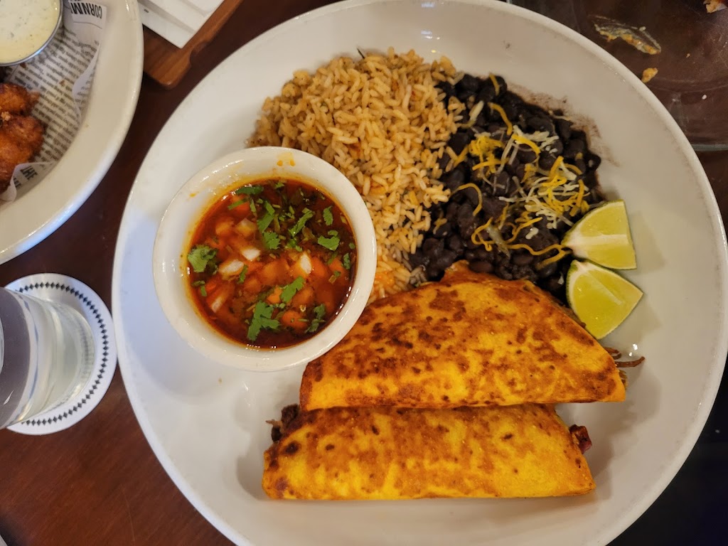 We tried the cheese curds(the sauce was the best part), the pretzel board (Yum!!), and my entree was the birria tacos.