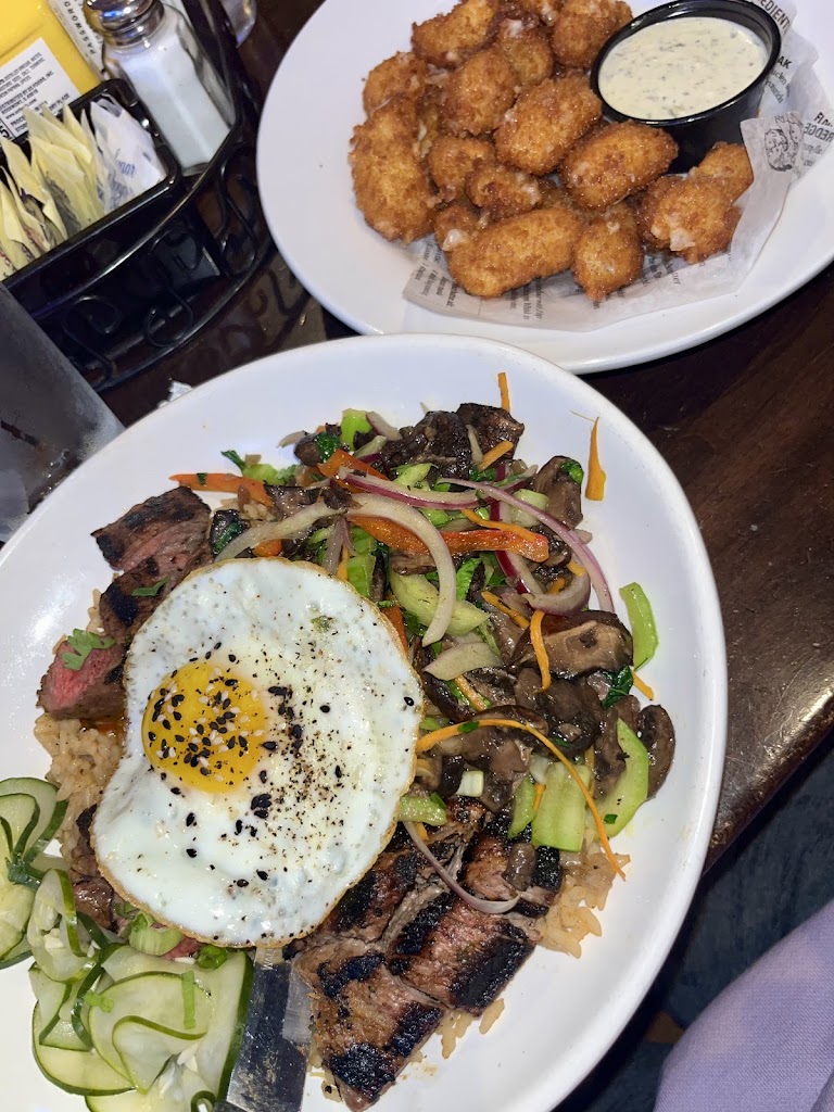 A couple of my friends and I stopped in for a late dinner as we were passing through the area. I got the Korean rice bowl and a side of cheese curds. My food was delicious. The rice bowl was bursting with flavor and everything in it was cooked to perfection. The cheese curds were decent, but the chimichurri ranch dressing was what really made them amazing. We dined in on a Monday evening and wasn’t expecting for this place to be so busy and noisy. Nothing bad about that necessarily, it just wasn’t what we were expecting on a weekday evening. Seems like a great hangout spot for college students, as that was who was mostly there. This just made for a very occupied server resulting in less attention to our needs and longer wait times. My overall take on the place is still a positive one. Cute restaurant and a decent sized one, at that.