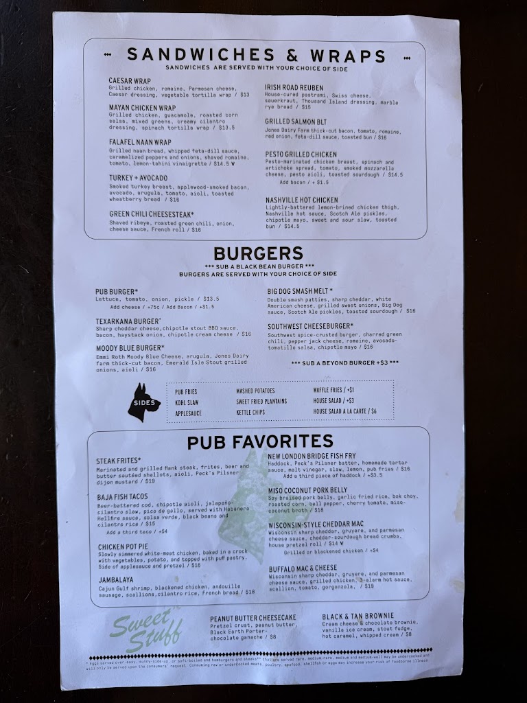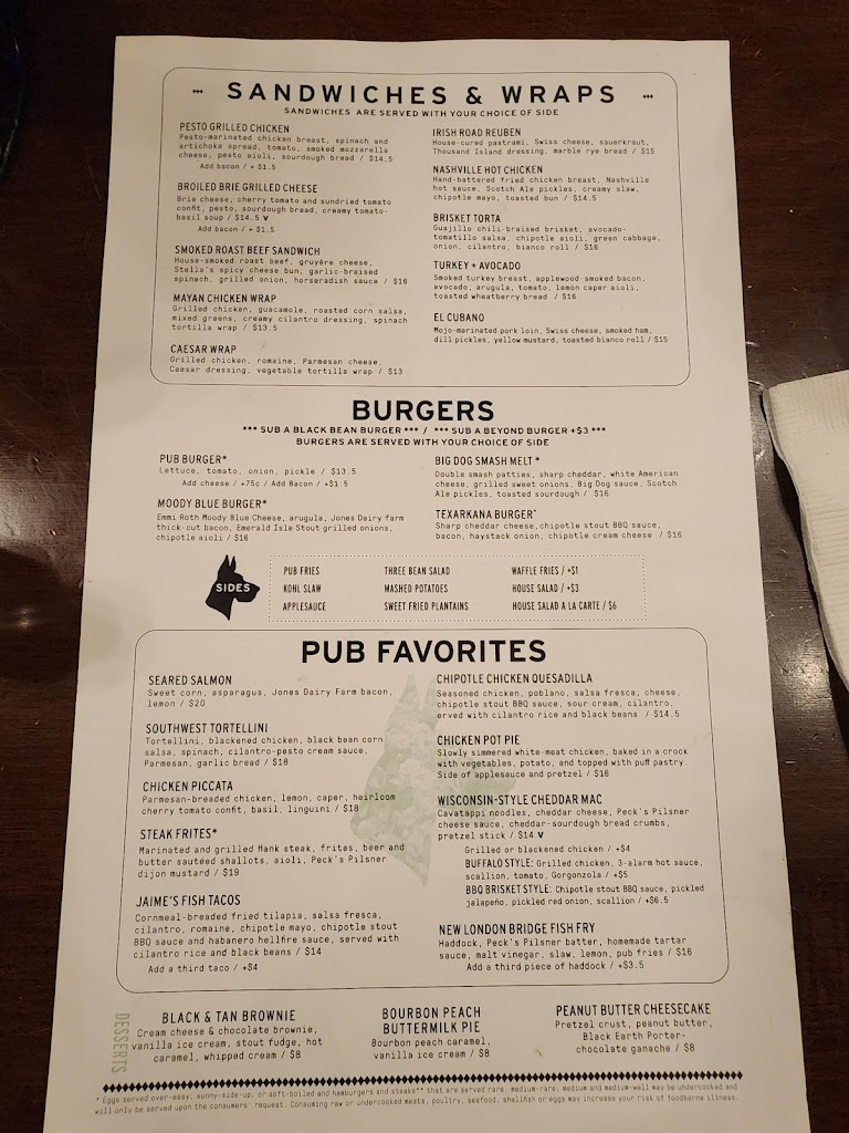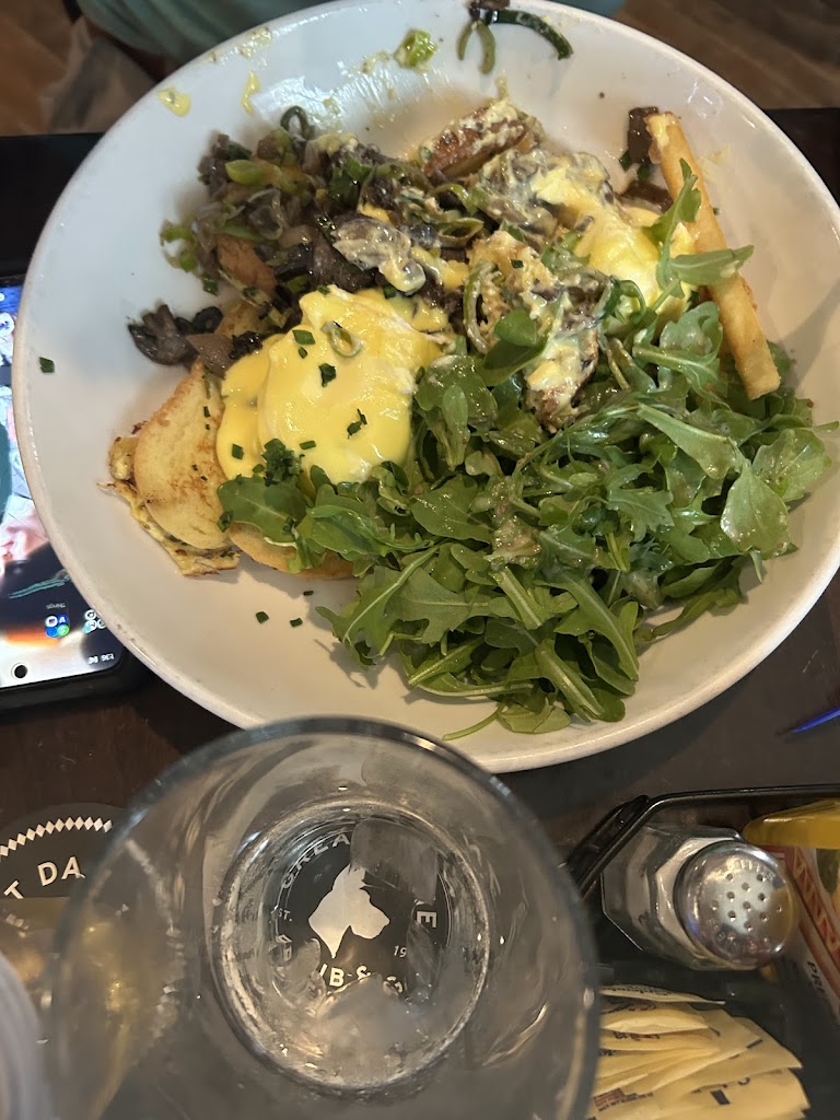 I got the goat cheese omelet for brunch and it was really good. I added bacon to it. Also had the old London stock ale and its a very good beer. Very good atmosphere.