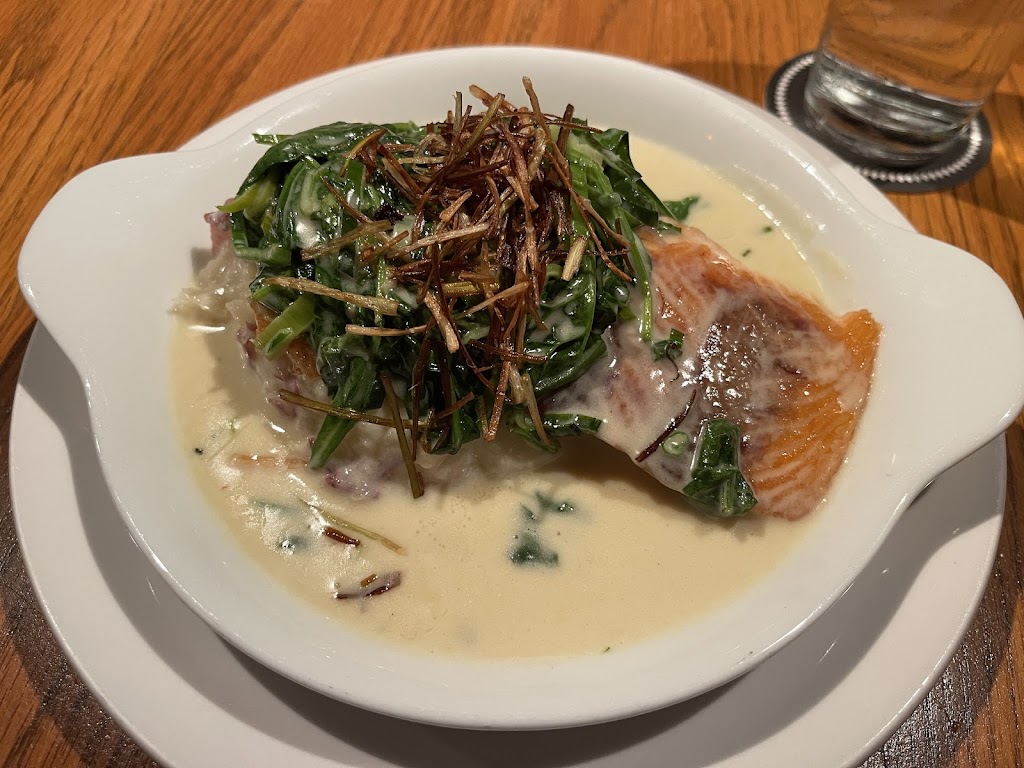 I tried the Beer-Braised Salmon at The Great Dane in Madison, and it blew me away. The salmon was perfectly seared — tender and full of flavor — and the Peck’s Pilsner cream sauce tied everything together beautifully. The leeks and baby spinach added a fresh, earthy touch, and the garlic mashed potatoes were creamy and rich, the perfect side to soak up that amazing sauce.