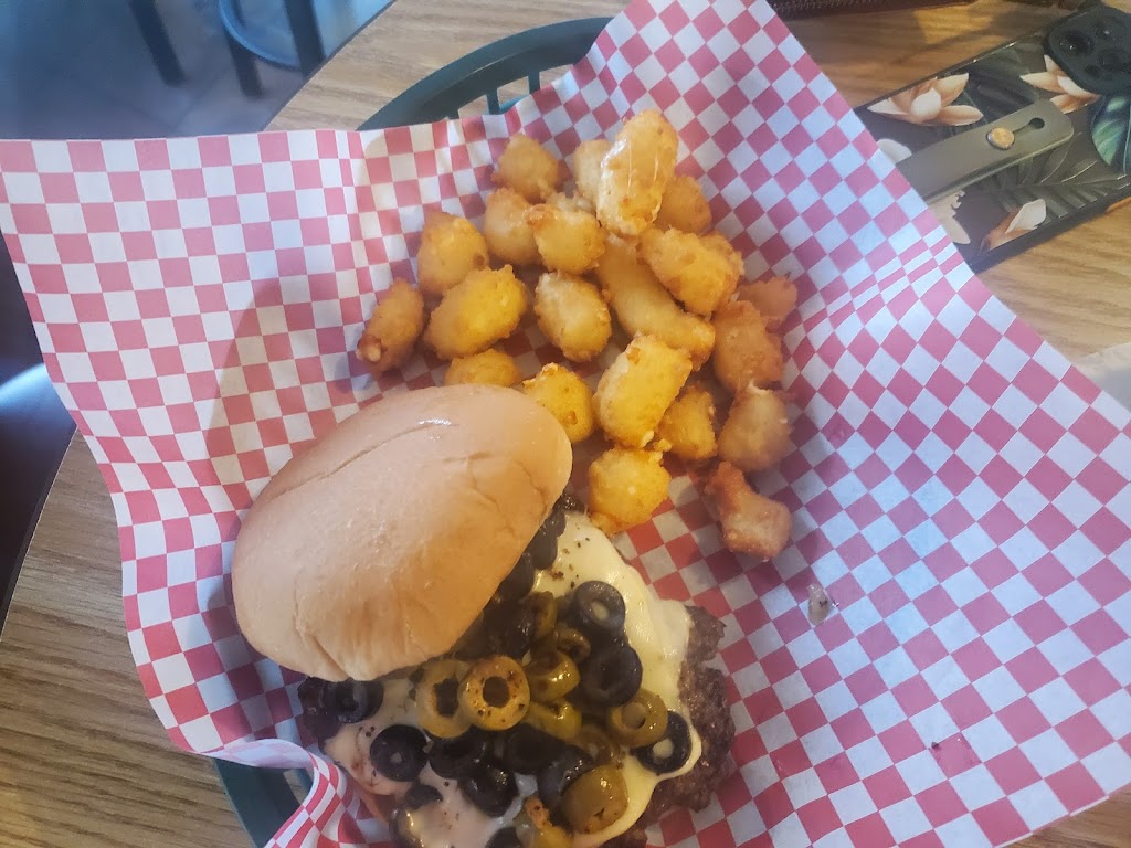 I stopped in to meet a friend around 4. I had the Philly which was great and my friend loved her olive burger. We shared the cheese curds and onion rings and both thought they were great. I'd highly recommend!
