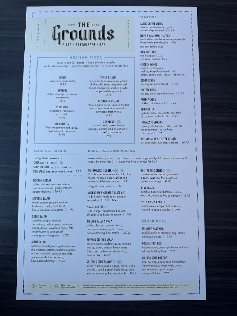 There’s not a lot of nice restaurants in Somerset/New Richmond but I can always rely on the Grounds! I haven’t even golfed here just stopped by for date nights and dinner with friends. Drinks are always good, food is always good and particularly love their pizzas. Sitting outside or inside there’s a great atmosphere either way. Staff is always on top of it and even when I order DoorDash they are quick to prepare the food and delivery super speedy! Love this place!