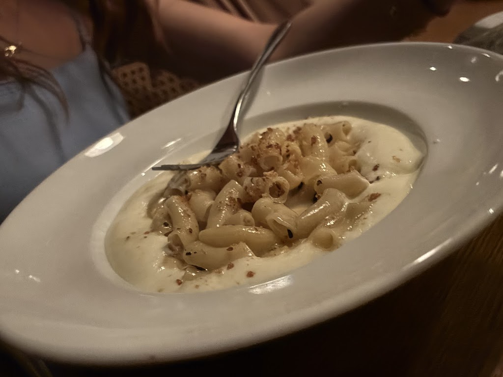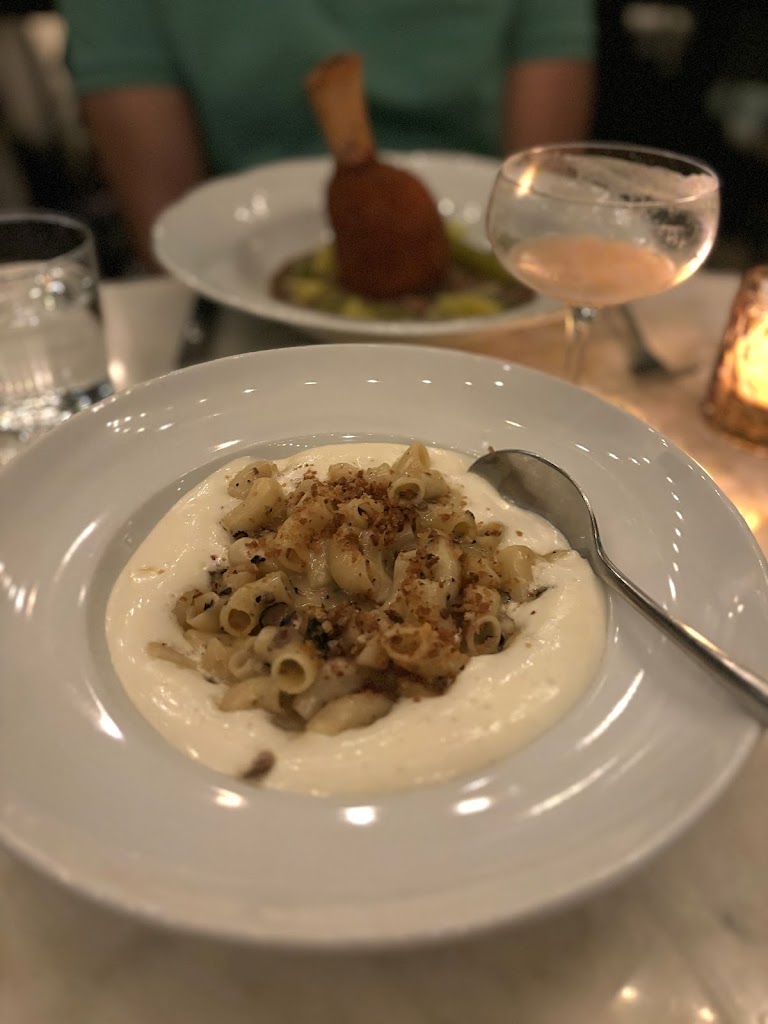 We finally made it to HH! Went for my birthday and fully enjoyed all of our dishes. Rosé bubbles for drink. The chicken liver mousse and the sizzling shrimp starters were very tasty. We shared the butternut squash soup and it was so, so flavorful. Nice for fall and is typically a time consuming process to make, so I’m all about ordering it when I have the chance! Loved the presentation when sharing a soup. Comes in teacups and is poured at the table. For the main course, my husband ordered the salmon and I ordered the truffle macaroni to do something different. Both very good. Pasta could’ve been hotter but that’s the only downside we experienced. Wanted to try the relish tray but we knew we would’ve been too full. Ordered Harvey’s version of a grasshopper for dessert and he ordered the Bailey’s dessert drink. Came out with a candle and took nice pictures. Thanks for the great Birthday experience! Our servers were very kind, approachable and I enjoyed chatting with them and asking questions about the menu. Glad we finally made it here! ☺️
