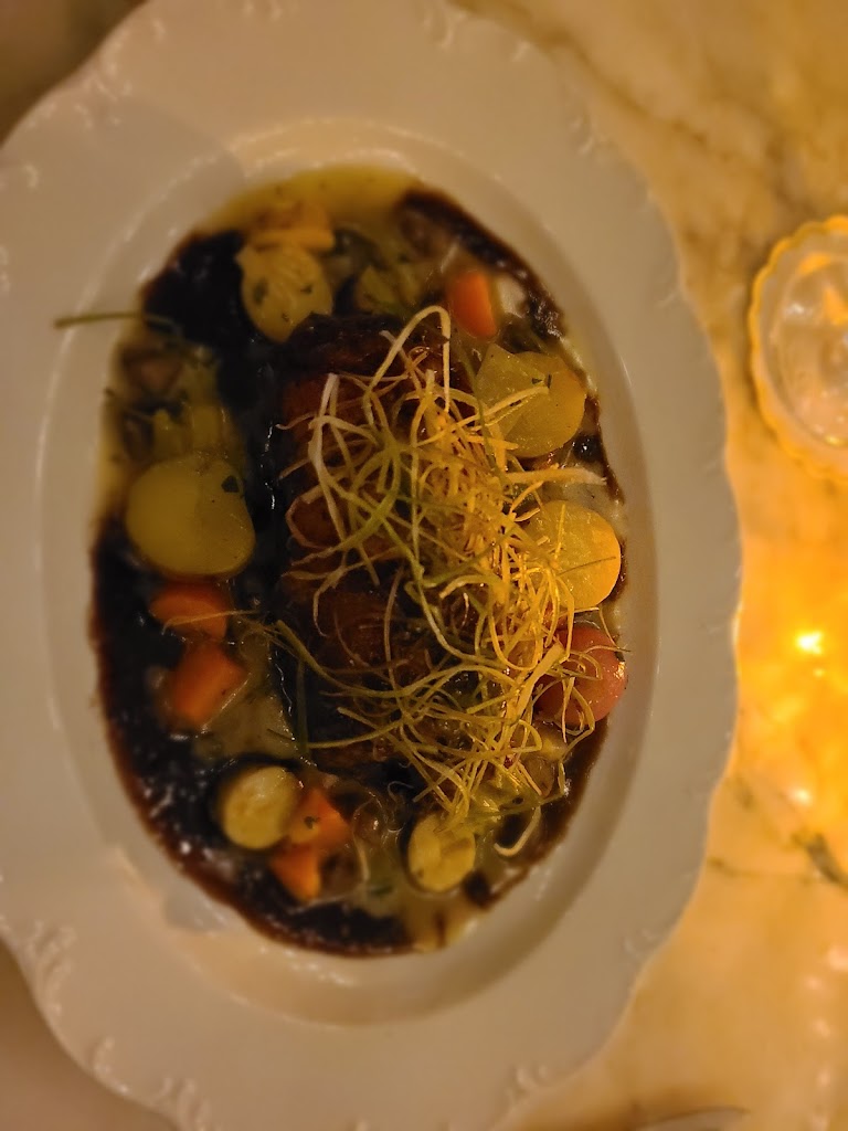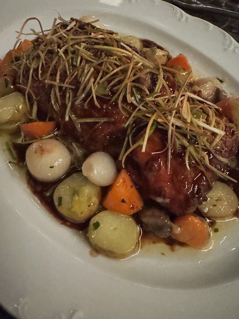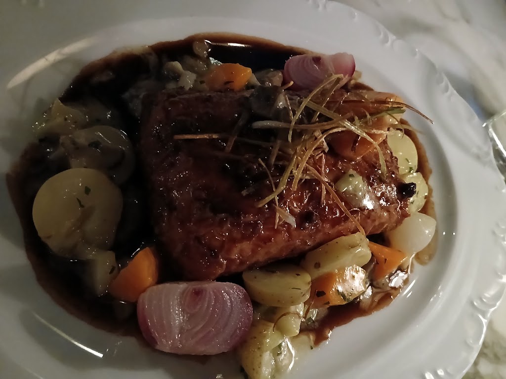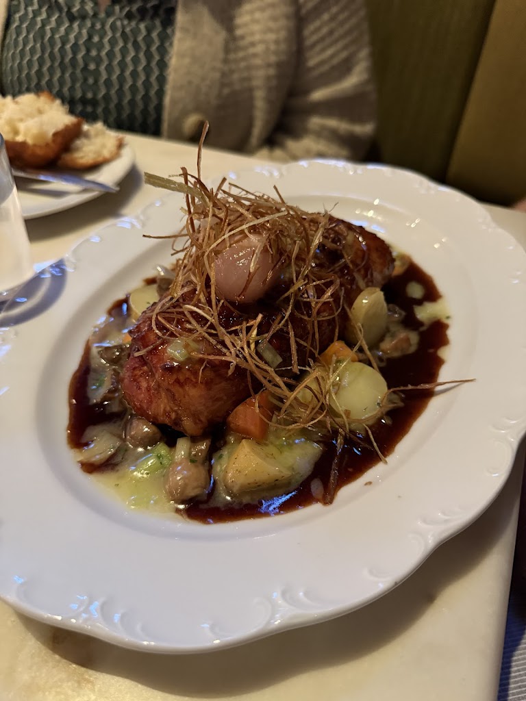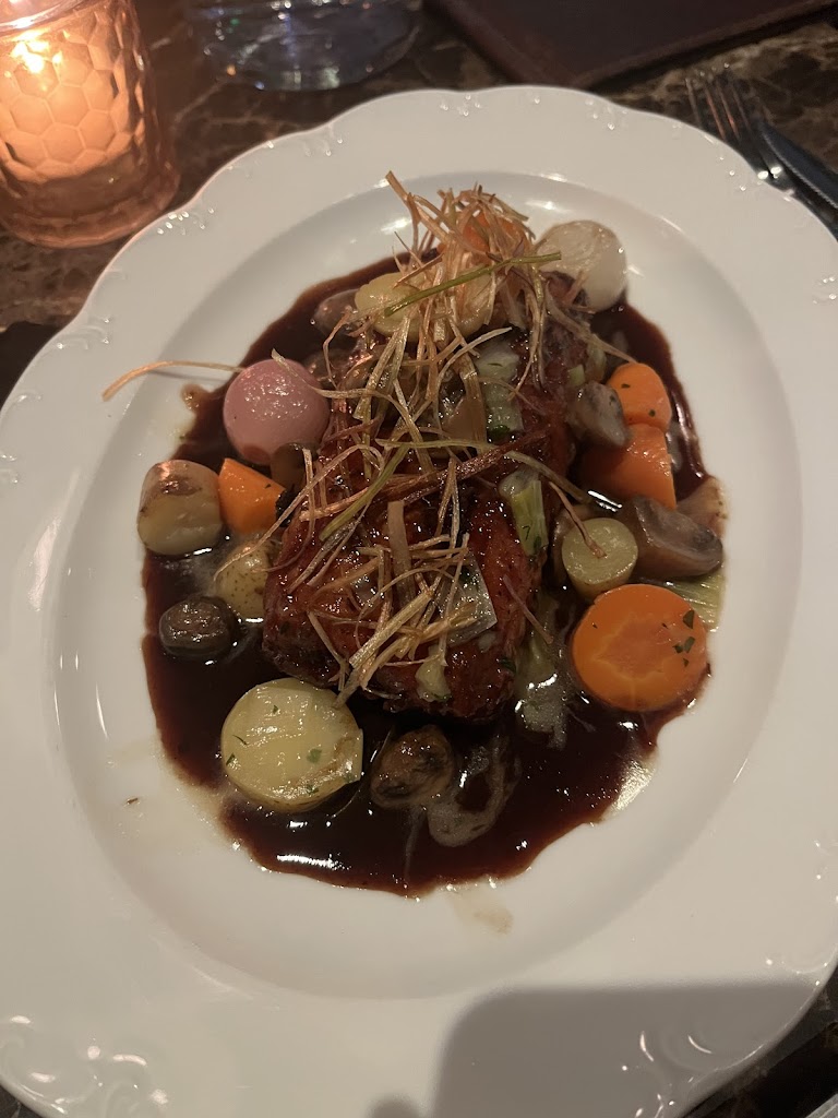 What a lovely experience! Let me tell you, I LOVE to be served. Someone wipes my crumbs away in between courses? Swoon. The staff were also very friendly and gave great recommendations. It felt like a whole team effort, not just one server helping each table. I got the coq au vin and it was wonderful. The light crunch from whatever was on top, and that sauce. Yum. We also got the relish tray. Now, they had to angle those veggies to fill the tray, but they did taste good. The bread that comes with your meal was also good. Wine bottles are half price on Wednesdays. Cute matchbooks when you leave. Great experience.