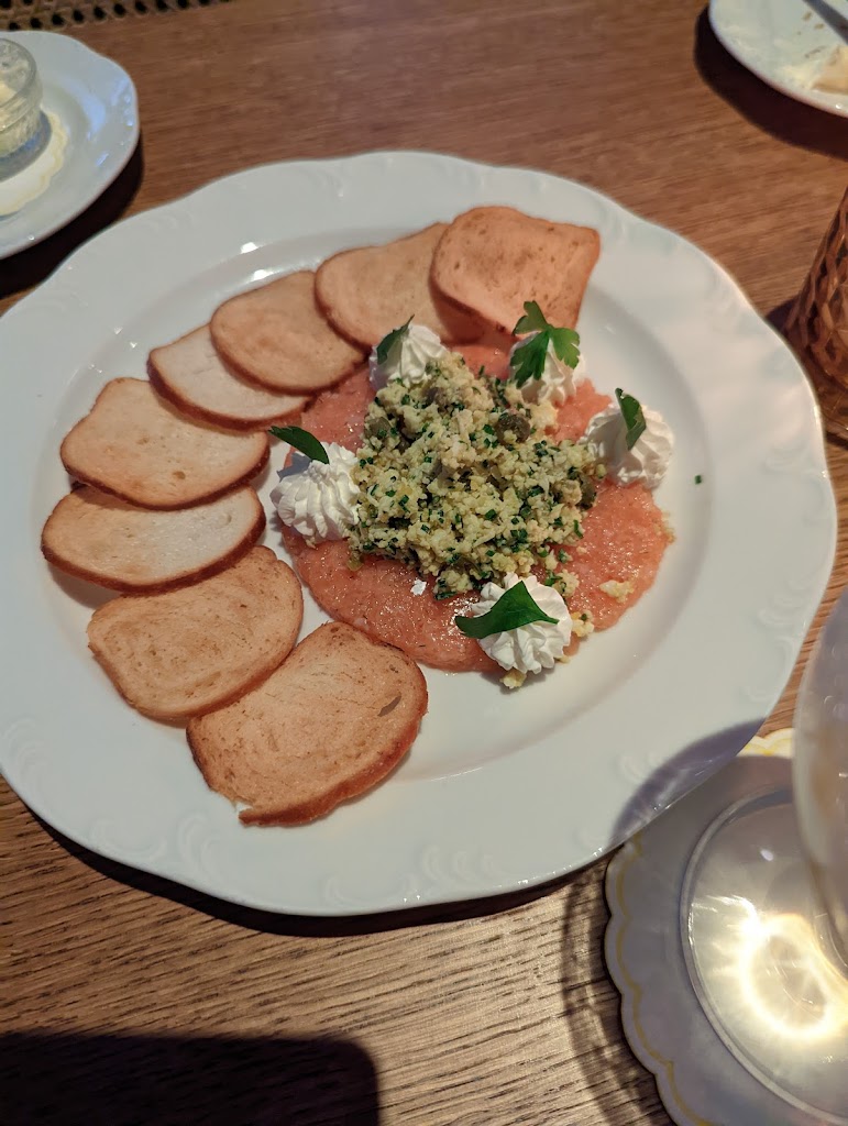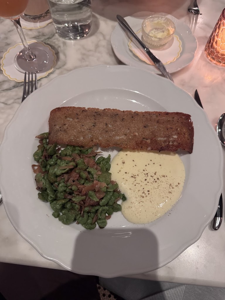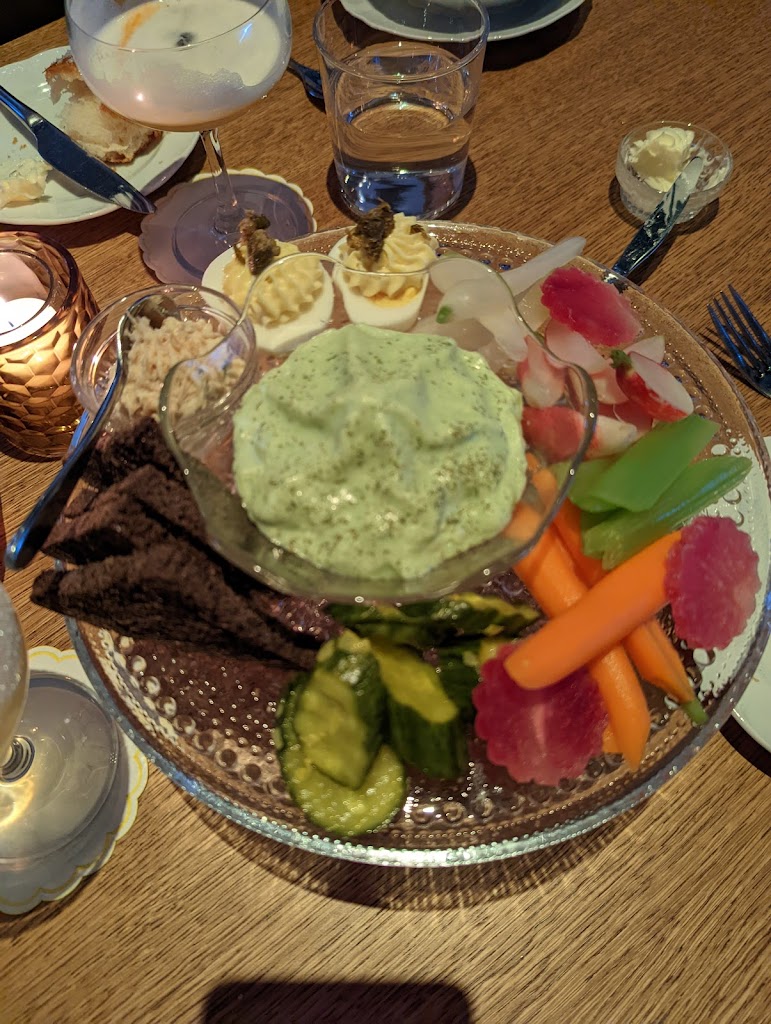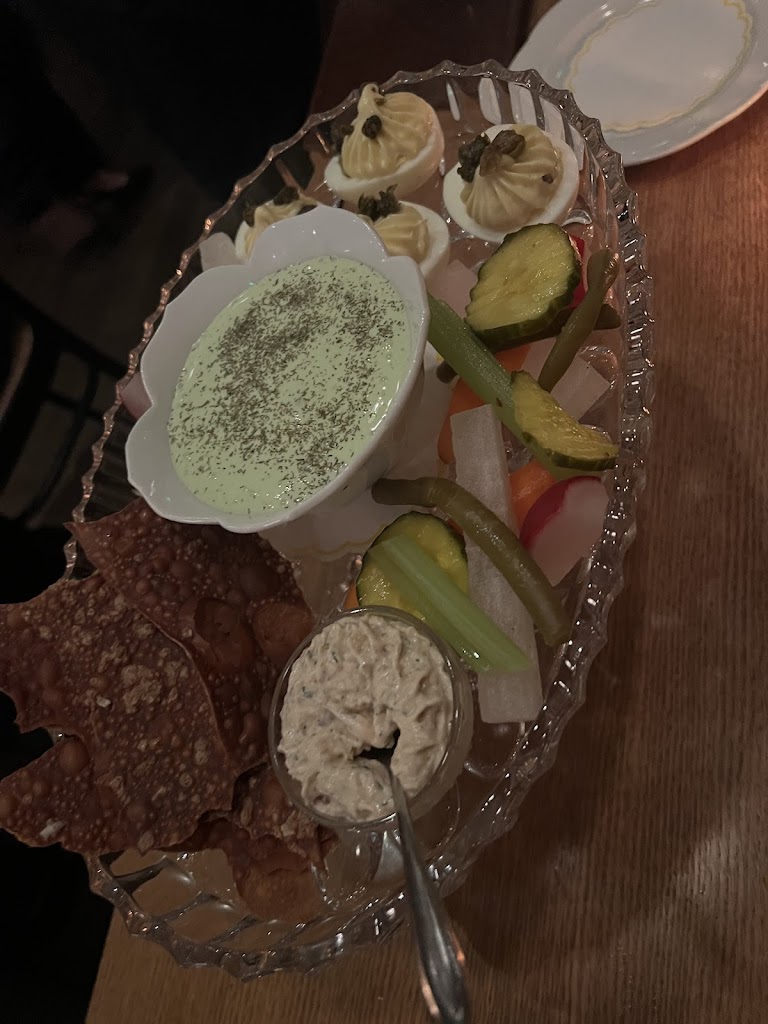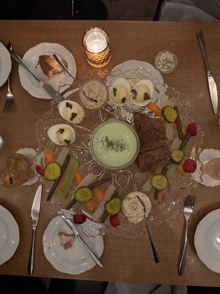 It was my first time coming in and it was great. My party and I got the smoked kielbasa and relish tray to start. We thought the kielbasa could’ve been hotter and the relish tray was really good. For the main course. I got the chicken schnitzel and I also got a side of spatzle. Another person got the Garbanzo beans and they thought that was good. The last person got the wallye and said that was reall good. For dessert we all shared the Pavlova which was excellent. Over a great experience. Would recommend.