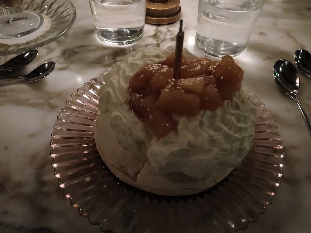 This place checks all the boxes for me. It has an awesome look inside,great service, and the food is incredible. I was a walk-in so I sat at the bar and really loved the drink offerings. The Penny Whistle was probably my favorite cause I'm partial to gin. The French onion soup here was my favorite of any FO soup I've ever had. And the pork shank as a main course was a knock out. On top of all that Zoe hooked me up with the Apple Pavlova which was just as good as leftovers. I will be back 100%.