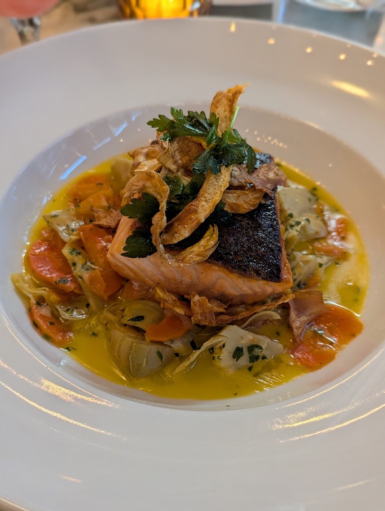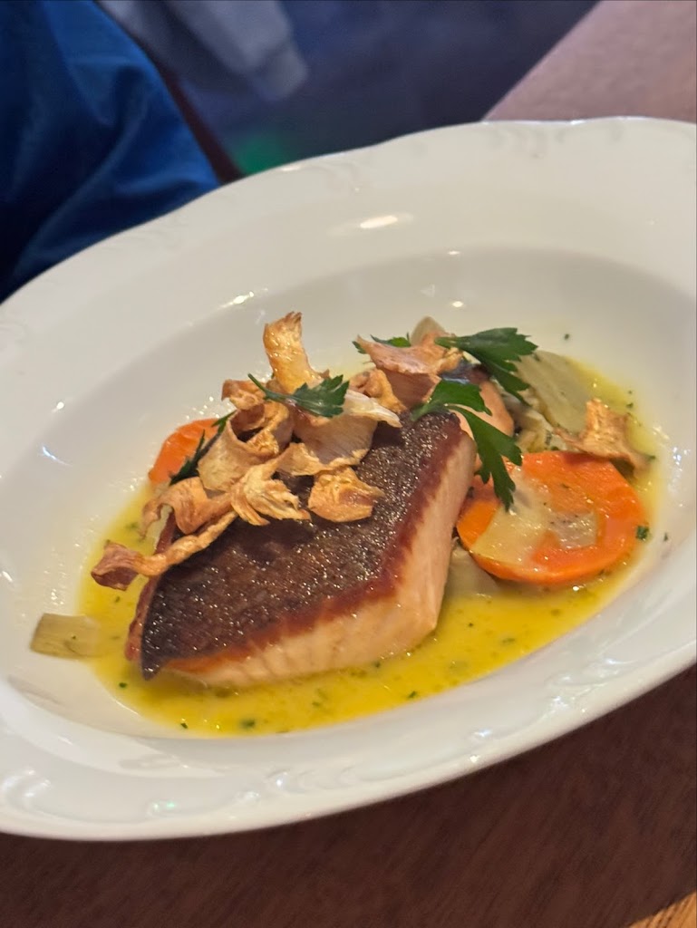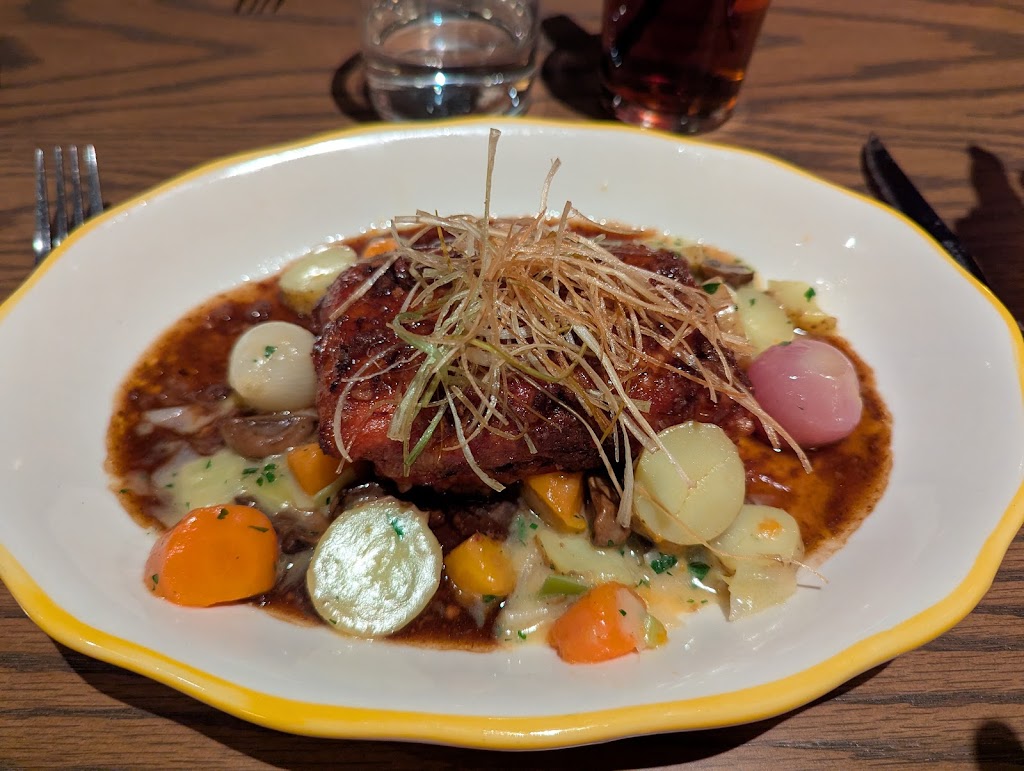 Nice atmosphere, but VERY disappointed that the descriptions of the dishes are VERY incomplete. I ordered the Coq Au Vin - described as chicken with bacon, carrots, potato, and red wine jus. To my shock, it was soaked in mushrooms. There were 3x as many mushrooms as carrots and potatoes yet it was not listed along with the other vegetables. Nor did our server say mushrooms to describe the dish when I told her I was considering it. Makes me think she didn't even know mushrooms were in the dish, which I would expect her to know. Right? My girlfriend liked the salmon and we had a bottle of wine but who in their right mind would spend $250 at a restaurant that is not capable of describing a dish in writing or by the server? Will not go back and I warn all future diners to ask questions (or don't bother going in the first place) because they may leave out a lot of ingredients in other dishes. Sad.