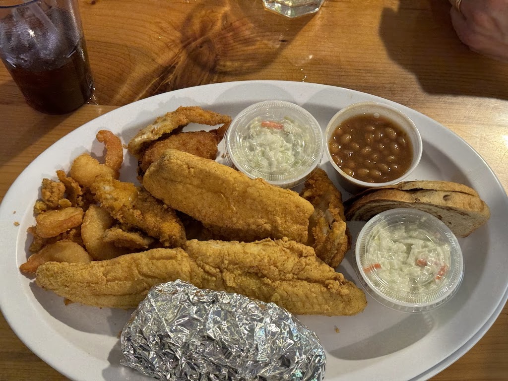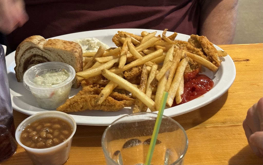 Our waitress was good, although she was busy she was friendly and polite. COD and Bluegill were delicious. My husband said his baked beans were good.
