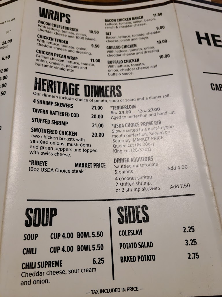 I used to love the Heritage went there all the time for the fish fry but it's seriously they have raised their prices and the food is not worth it I got all you can eat fish and none of the breading was even on the fish that was not acceptable very disappointed