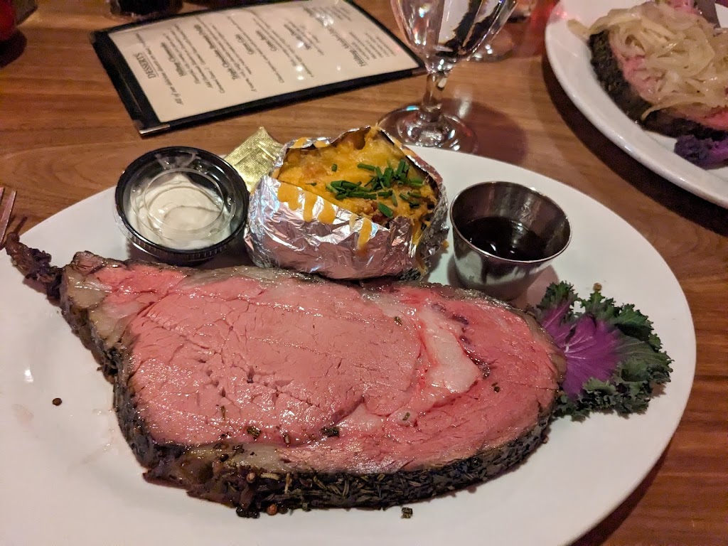 Favorite prime rib I’ve had in quite a long time. Edge to edge medium rare, delicious wedge salad. Not a huge fan of the old fashioned but the blackberry old fashioned was tasty.