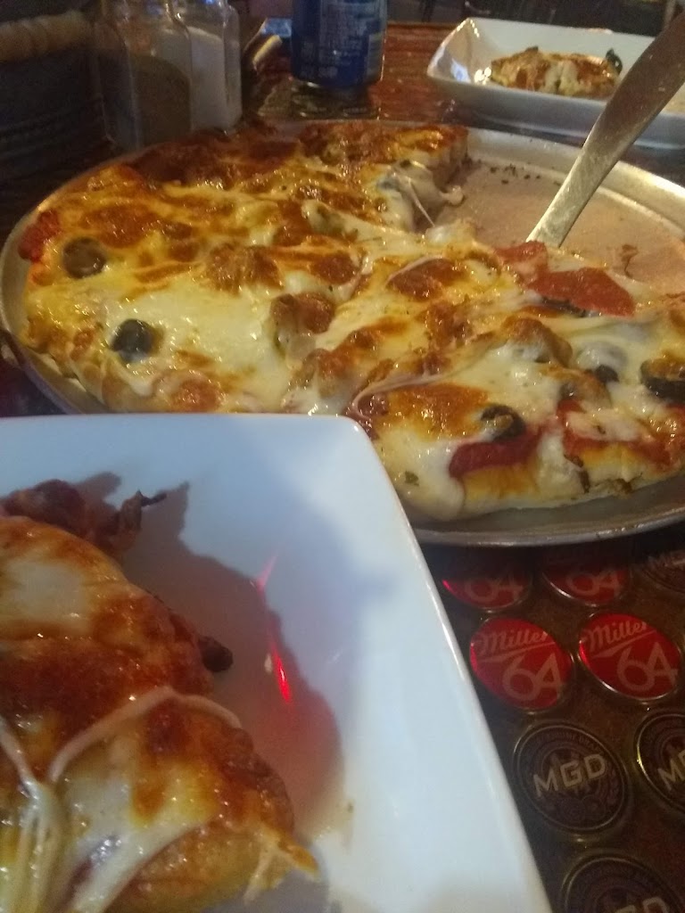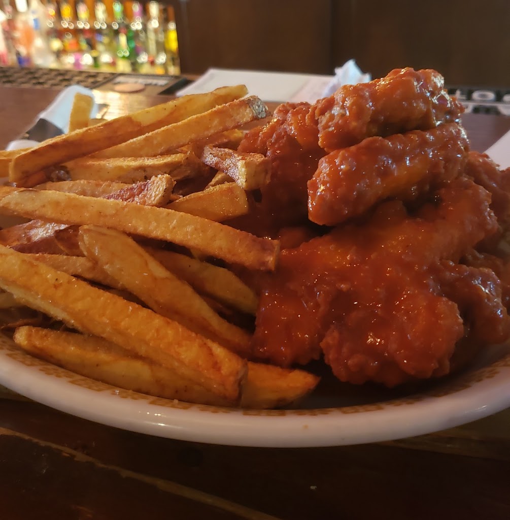 the boyfriend and i ordered takeout on Easter, it was hot, done on time and everything you’d expect bar food to taste like but better. we had the fried pickle chips (which is a weakness of mine) the fried shrimp wrap with waffle fries and he ordered sausage and pepperoni pizza.