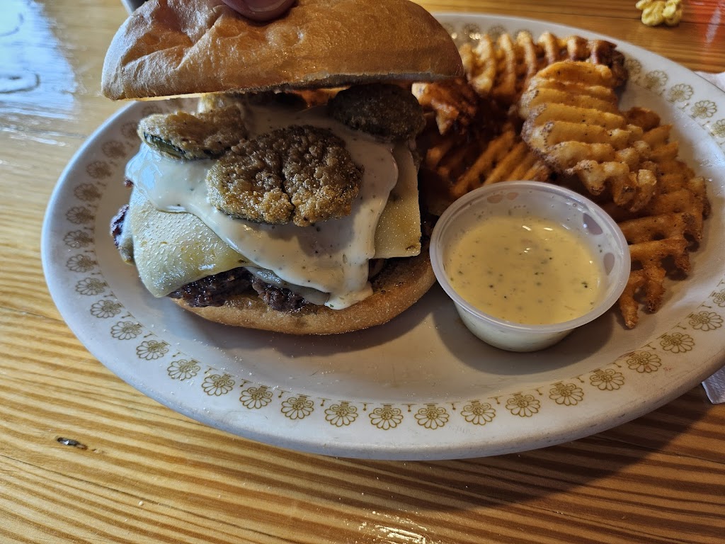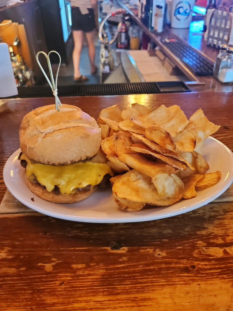 Nice wait staff. Loved the old style ceiling. My husband loved his cheeseburger.