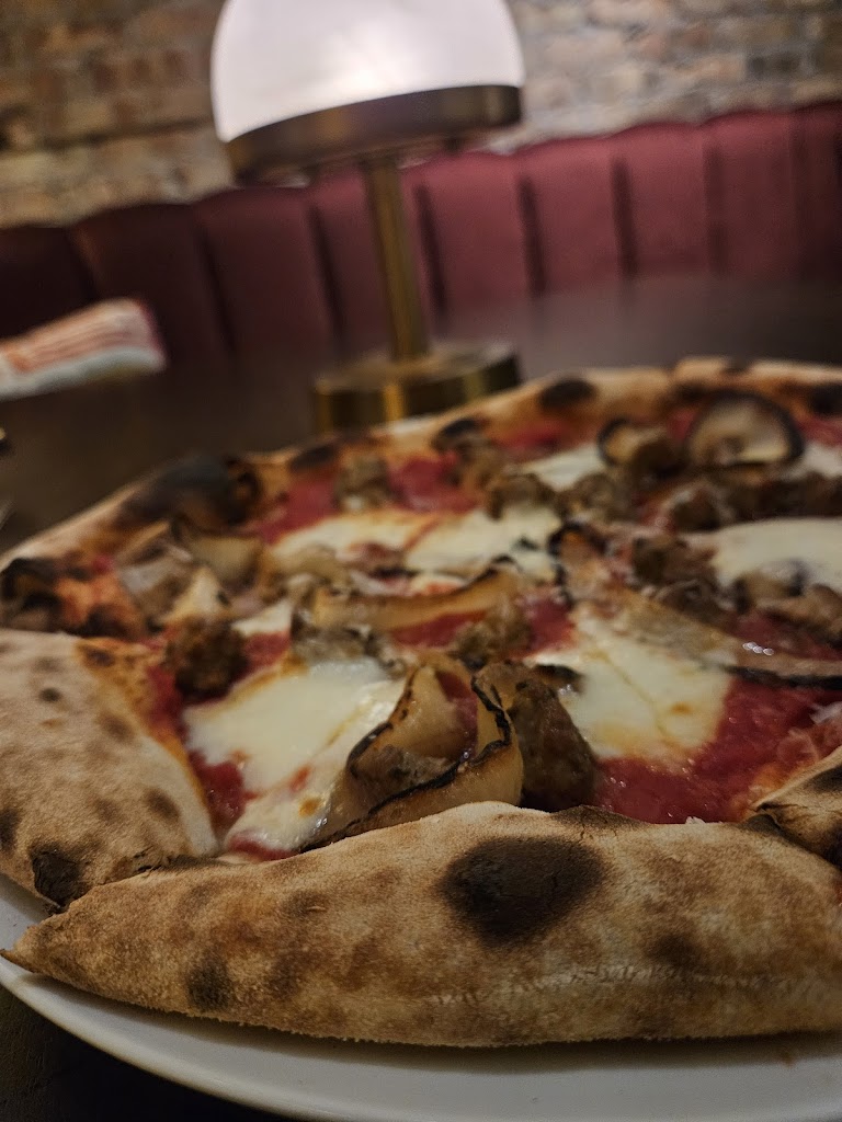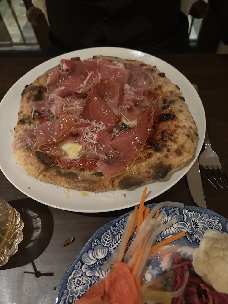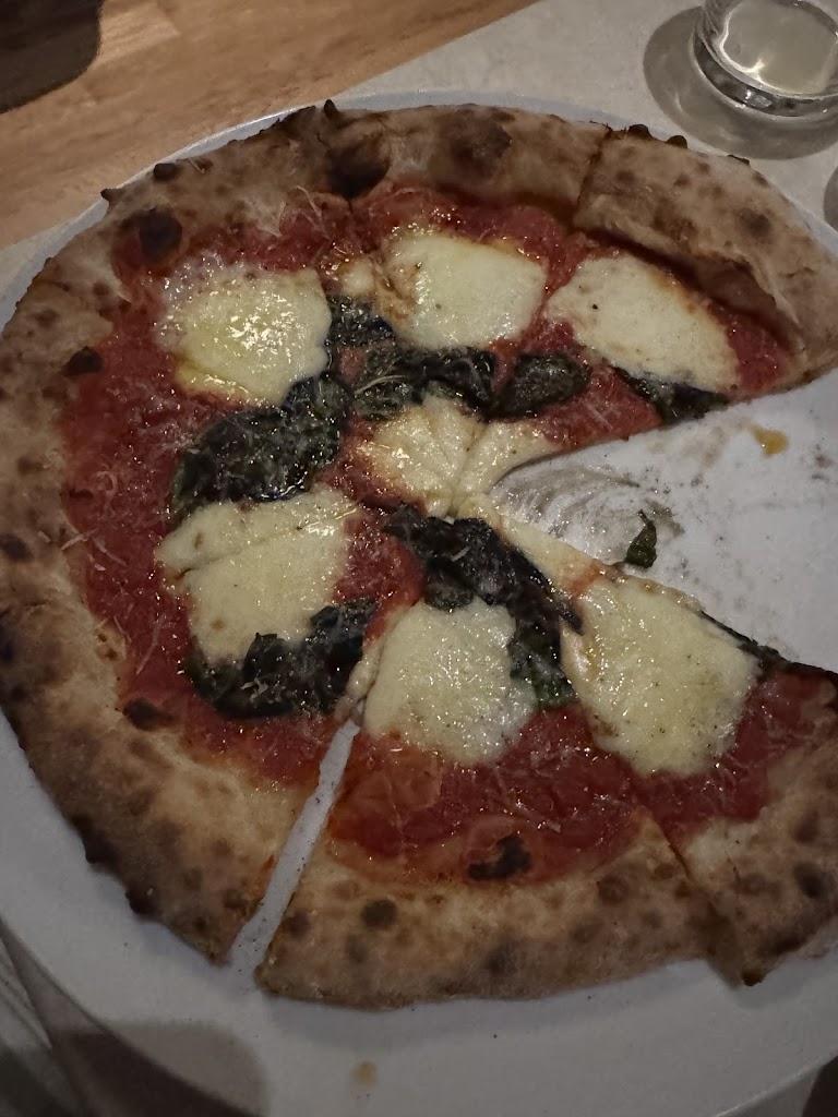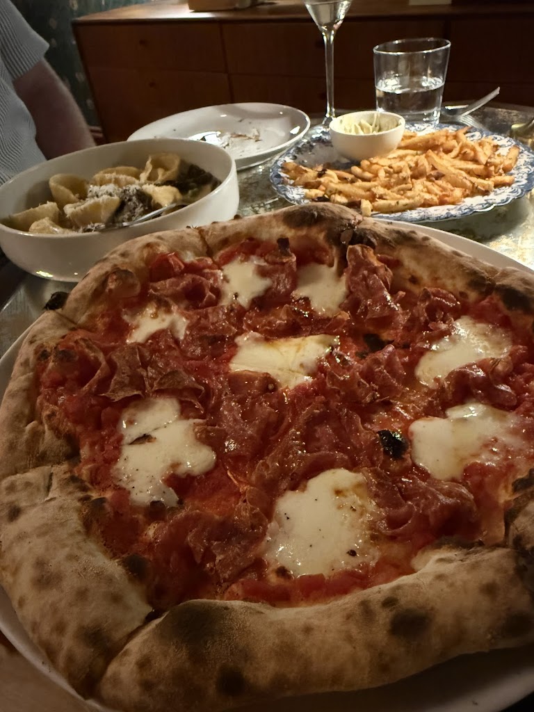Pizza was incredible 🍕 such a unique, light, crispy crust so delicious not chewy but perfectly kissed by the woodfired oven it was fresh and fantastic. My favorite was the expertly placed Calabrian peppers and thin sliced sopressata. It was so delicate yet satisfying I could’ve eaten the whole thing.