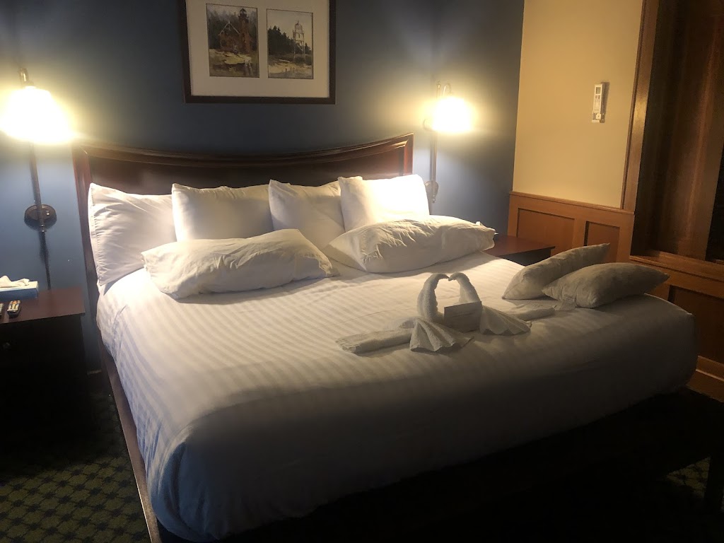 We checked into our ”king suite” Friday night after a long drive to Wisconsin and a ferry ride. We got into our room and at first everything was great. Then the problems started... We missed an email about ”bringing our own comforter” and so the bed had a thin blanket and 2 sheets. Okay, we can live with that. Then more problems reveal them selves. The room has living and dead bugs in the corners, the bed is probably 10 years old and has dents in it from other people sleeping there, the hardware in the unit is dated and worn. The biggest thing was that we had no air conditioning in our room after fumbling with this ancient mini split they have set up. It was 75+ degrees in our room all night long. MISERABLE. They have this “EMERGENCY line” that we did not call because, the a/c definitely has mechanical issues and the likelihood of a maintenance man remedying that in the middle of the night are slim to none. I feel like for $305 a night these problems shouldn’t even exist with a climate control system. We were called by a manager after we told the front desk woman this morning that we were checking out. She offered us a blanket but, couldn’t move us to a different room with proper A/C. Bye. You can tell the owner of this inn is cheap as when we awoke to go to breakfast the lights were off in the hallways. 🙄The woman who called us really should take a different approach with customer service as we were made to feel like all of this is just standard and basically we were SOL. She also cut my husband off multiple times on the phone and was just plain rude.